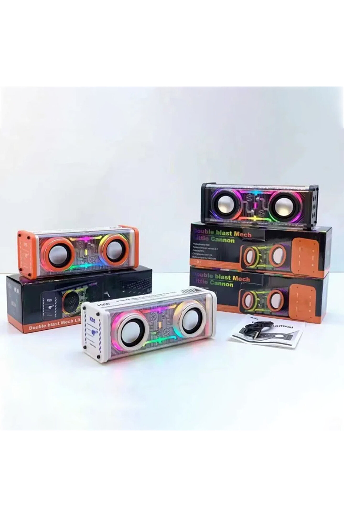 1. ; Malzeme: ABS 2. ; Bluetooth sürümü: V5.0 3. ; Çalışma mesafesi: 10m 4. ; Frekans yanıtı: 50Hz-18khz 5. ; Pil kapasitesi: 1800mAh 6. ; Şarj süresi: 2 saat 7. ; Çalma süresi: 2-3 saat 8. ; Hoparlör gücü: 5Wx2 9. ; Bluetooth 5.0 sürümü, bağlantıyı daha sorunsuz, hızlı ve kararlı hale getirir 10. ; Şeffaf mecha kabuğu, teknolojinin sesini hissedin, zarif ve şık 11. ; 10W yüksek güçlü çift hoparlör, 360 derece stereo ses, farklı keyif 12. ; Renkli hayalet flama, yüksek değerli görünüm, havalı ve cömert Ambalaj listesi: Bluetooth hoparlör X1, USB kablosu X1, ses kablosu X1, kullanım kılavuzu X1;