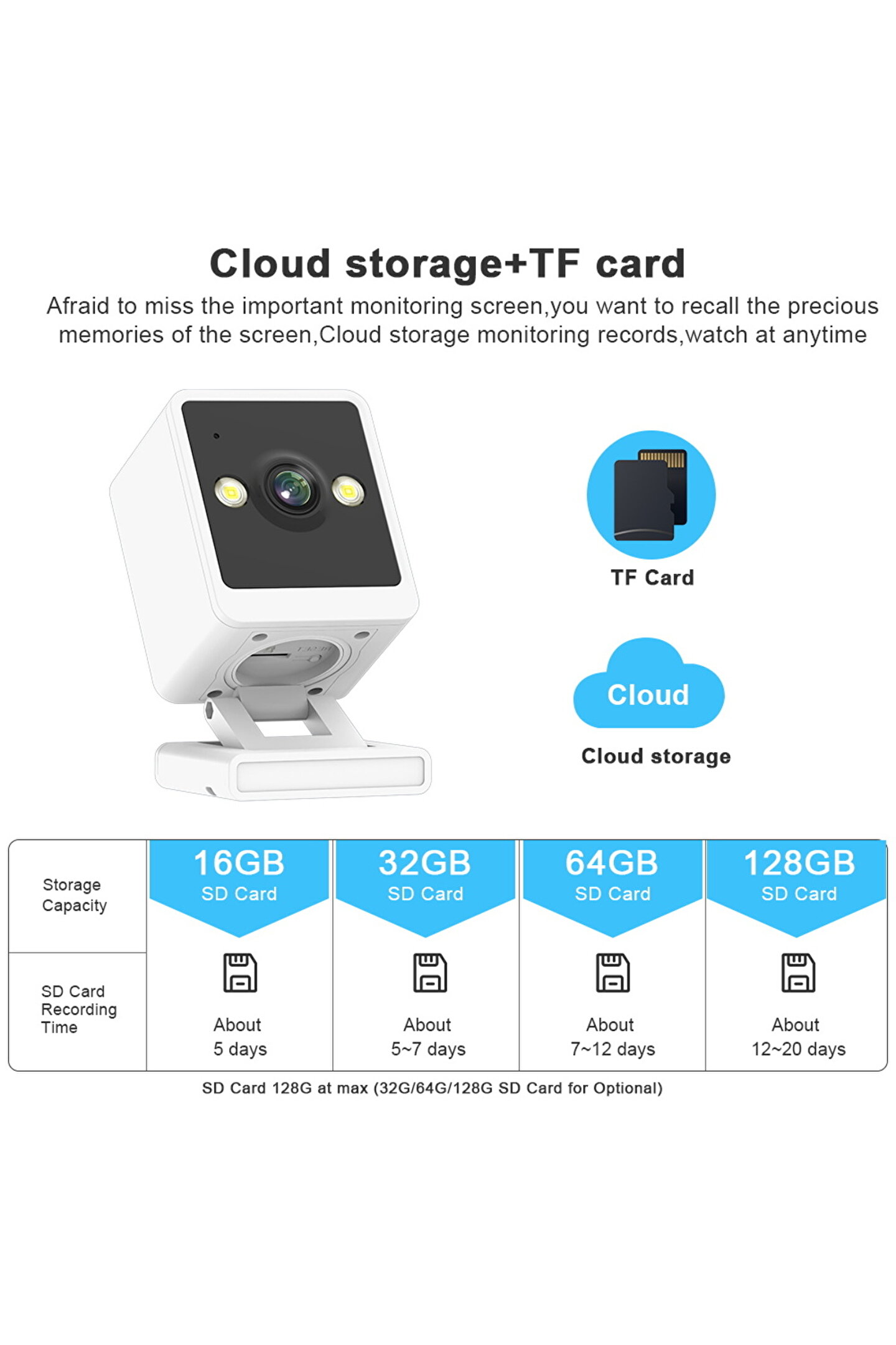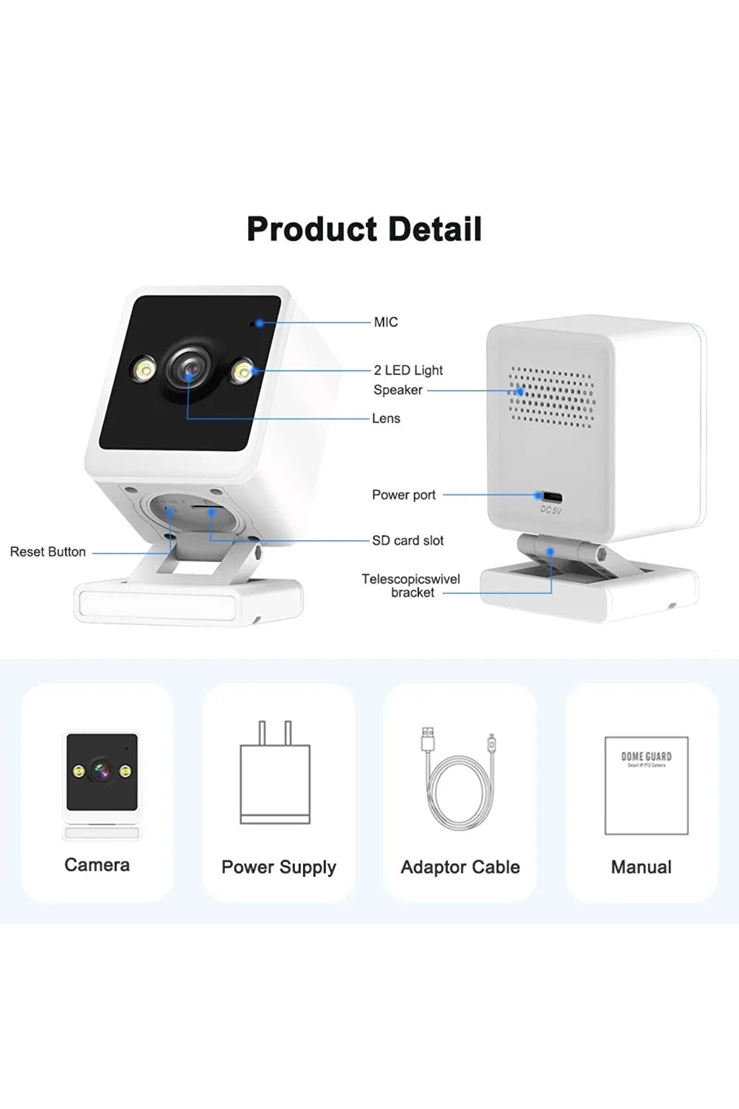 * 1080P HD çözünürlük * 175 ° geniş açı * Destek hareket algılama * Renkli gece görüşü * IPhone/Android uygulaması için Push bildirimi * Çoklu kullanıcı görünümünü destekleyin, başkalarıyla paylaşın * Gerçek zamanlı görüntü aktarımı, uyarlanabilir ağ * İki yönlü konuşma * Destek Micro SD kart: maks; 128G TF kartı, verilerinizle yerel depolama, daha fazla güvenlik 1080P HD kamera * 1080P HD çözünürlük, 30fps yüksek kare hızı görüntüsü; * Daha net ve pürüzsüz görüntülerin tadını çıkarmanızı ve size pürüzsüz ve şok edici bir HD deneyimi getirmenizi sağlar; Akıllı hareket algılama * En uzak algılama mesafesi: 5 metre uzakta gelen insan vücudu ve video yakalama; Aynı zamanda, otomatik olarak APP message remindera iter; İki yönlü konuşma Herhangi bir zamanda uzaktan iletişim kurmak için iki yönlü konuşmayı, yerleşik hoparlörleri ve yüksek hassasiyetli mikrofonu destekler; Uzaktan erişim uygulaması Nerede olursanız olun, her yerden canlı oynatma videosu alabilirsiniz; Kablosuz WiFi bağlantısı * Tarama QR kodu, kablosuz hızlı eşleştirme, AP Hotspot bağlantısı * Bu kamera sadece destek 2; 4G wifi bağlantısı (5G wifi desteklenmiyor) TF kartı ve bulut depolama * Maksimum TF kart depolama 128 gb'a kadar * Ayrıca uygulamada bulut depolama paketleri satın alabilirsiniz;