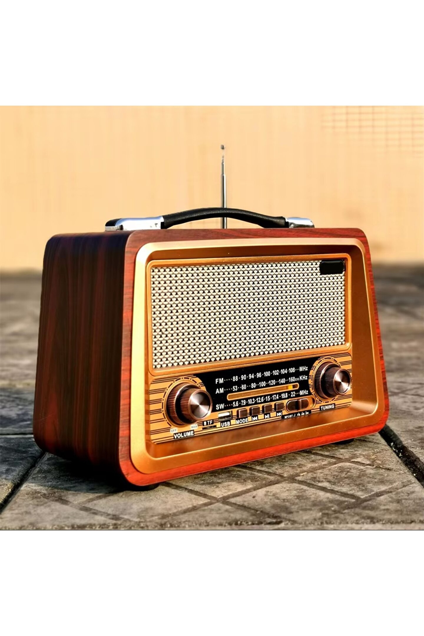 Rustik Tarz: Taşınabilir retro radyo, ahşap ve plastik malzemeden yapılmış, çok vintage ve narin, eviniz için harika bir dekorasyon.