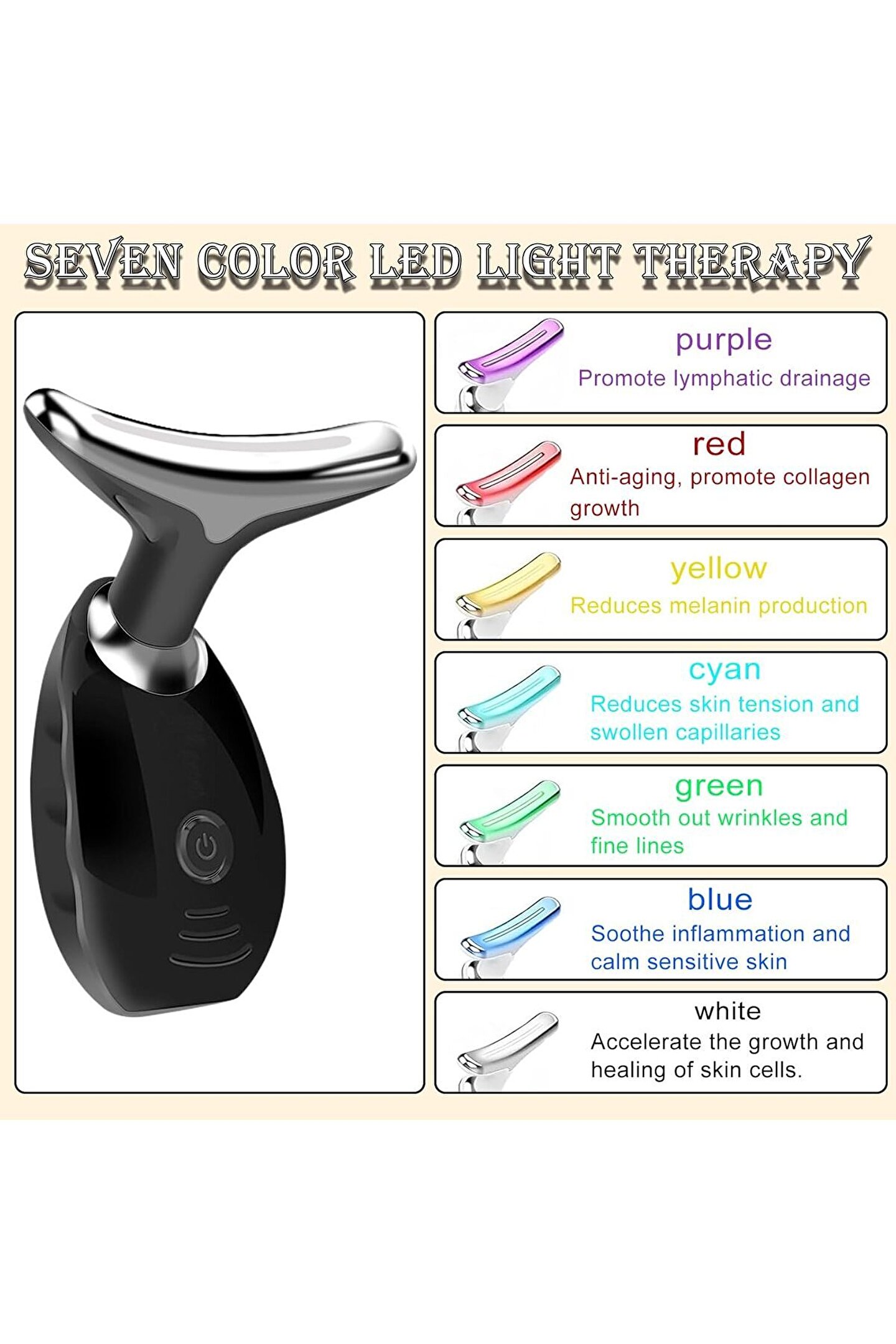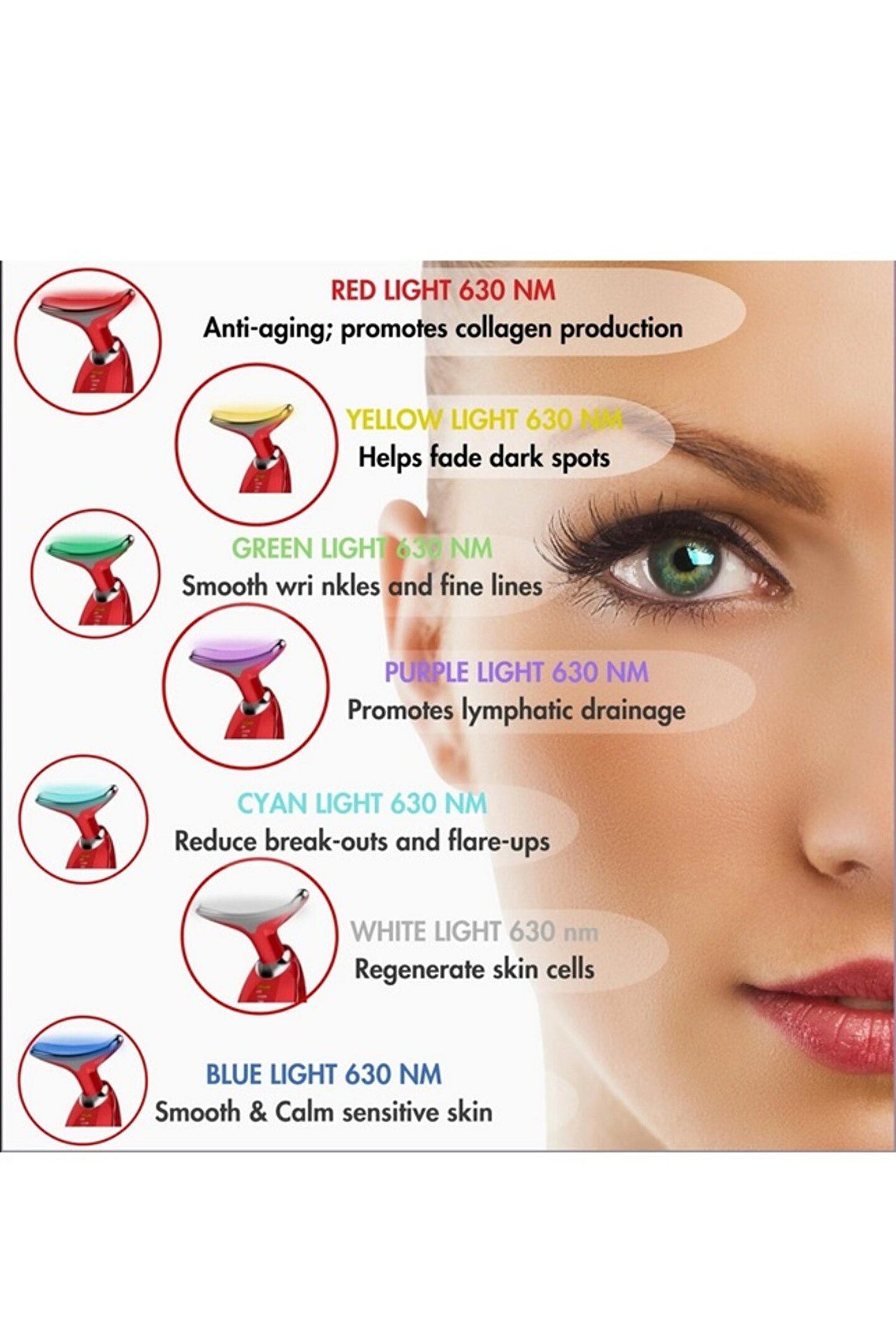 Kırışıklıklara karşı yüz masaj aleti – üç enerji çoklu ışık dalga modu, yunus görünümlü, üç boyutlu halka tasarımı, 160° cilt ve boyun kıvrımlarına tam uyum ile çevrelenmiştir, besin emiliminin verimliliğini arttırır, cildin gerginliğini iyileştirir.