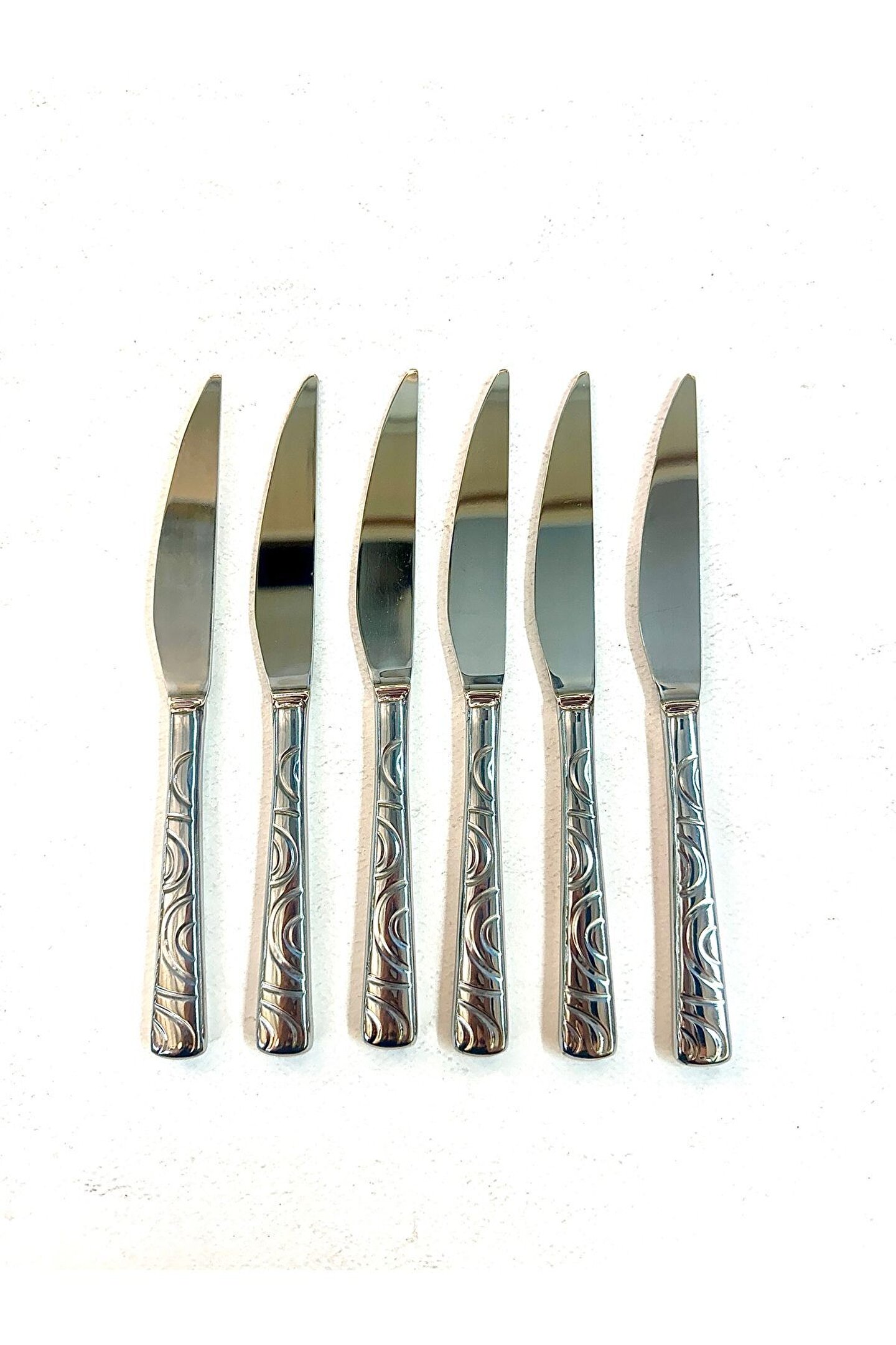 Tatlı sunumlarınızda şıklığı ve keskinliği bir arada sunan sarmaşık pasta bıçakları, her lokmanın tadını en iyi şekilde çıkarmak için tasarlanmıştır; Dayanıklı çelik materyali sayesinde uzun ömürlü kullanım vaat eder ve sık kullanımlarda bile bıçakların keskinliğini korur; 6 kişilik set halinde sunulan bu bıçaklar, aile yemeklerinden özel davetlere kadar her türlü etkinlikte ihtiyacınız olan sayıda bıçağı tek pakette toplar;