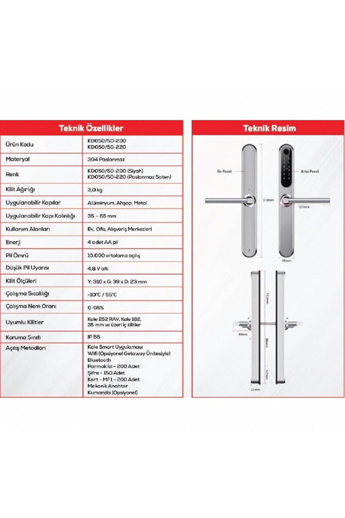 Kale KD050/50-200 Elektronik Kapı Kolu Kilidi - Şifreli, Parmak İzli, Kartlı