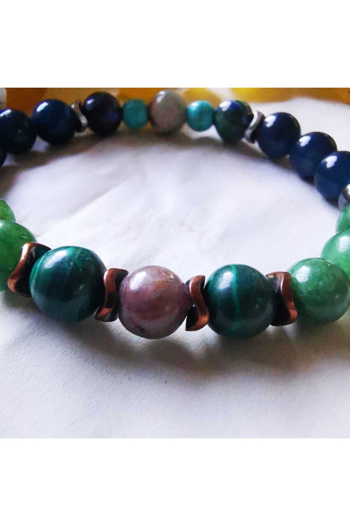 KAM Doğal Taş Takı Boğa Burcu %100 Doğal Taş Bileklik Boğa Burcu Bilekliği, Boğa burcunun özellikleri dikkate alınarak BOĞA burcuna özel olarak seçilmiş taşlar ile oluşturulmuştur %100 doğal taşlar ve doğal malzemeler kullanılarak özel olarak üretilmiştir. Boğa Burcu Taşları; Zümrüt 1, Akik 12, Azurit 2, Malakit( imt) 2, Krizakol 1, Turkuaz (imt) 2. Ürünlerimizin tamamı %100 doğal taşlar ve doğal malzemeler kullanılarak üretilmiştir. (Plastik, tahta, silikon boncuklar kesinlikle kullanılmamıştır.) (Yapay oluşturulmuş taşlar taş içeriğinde belirtilmiştir.)