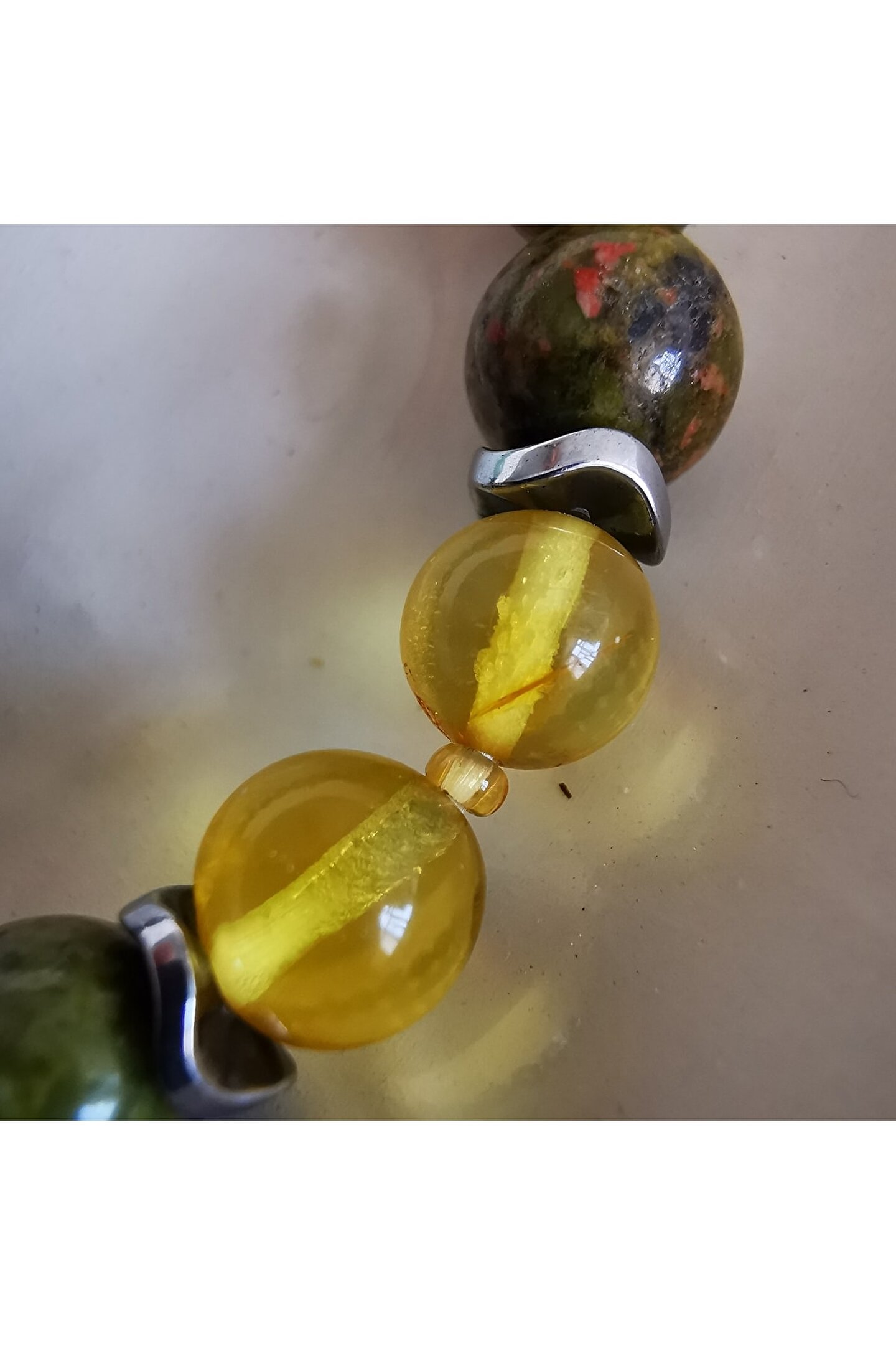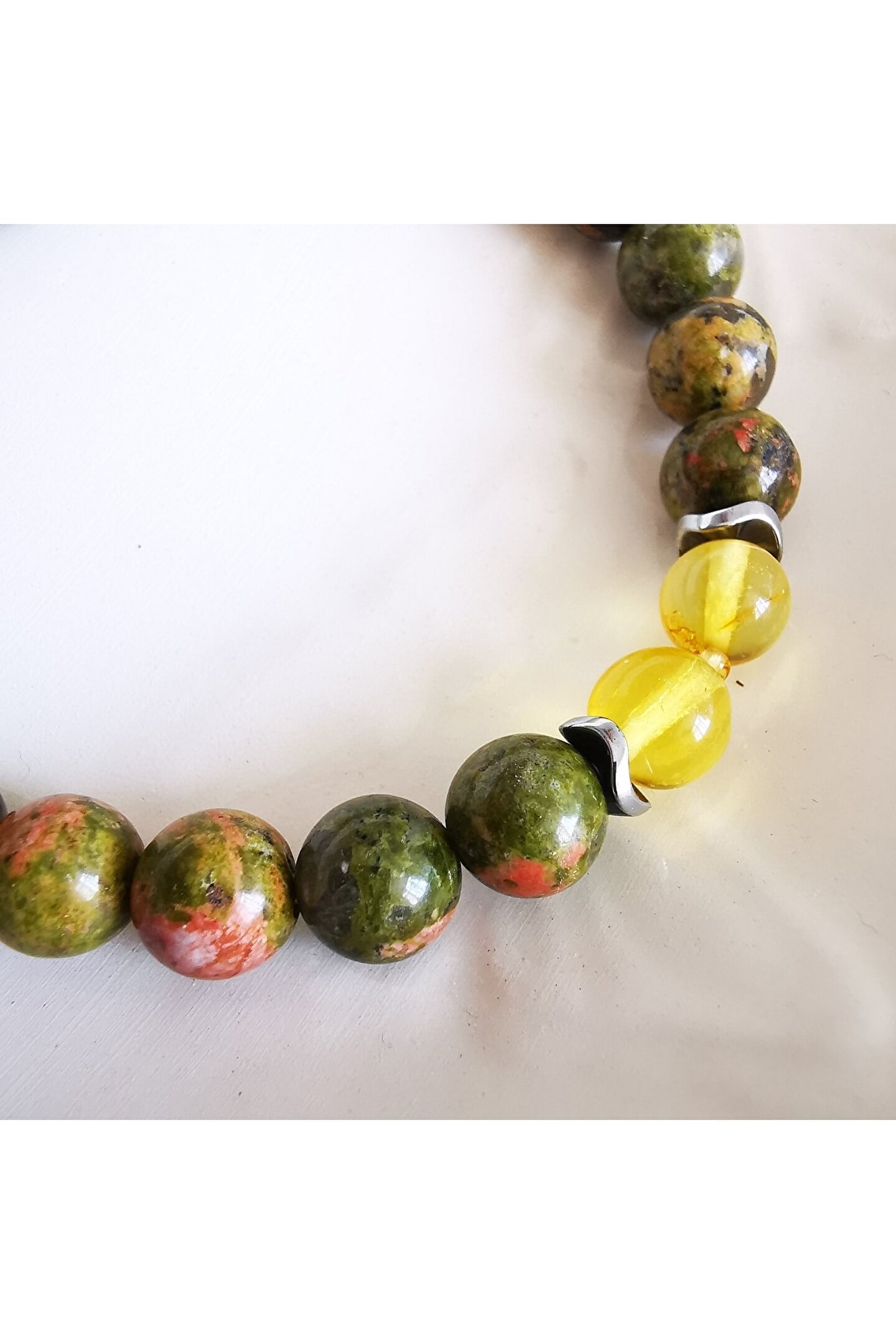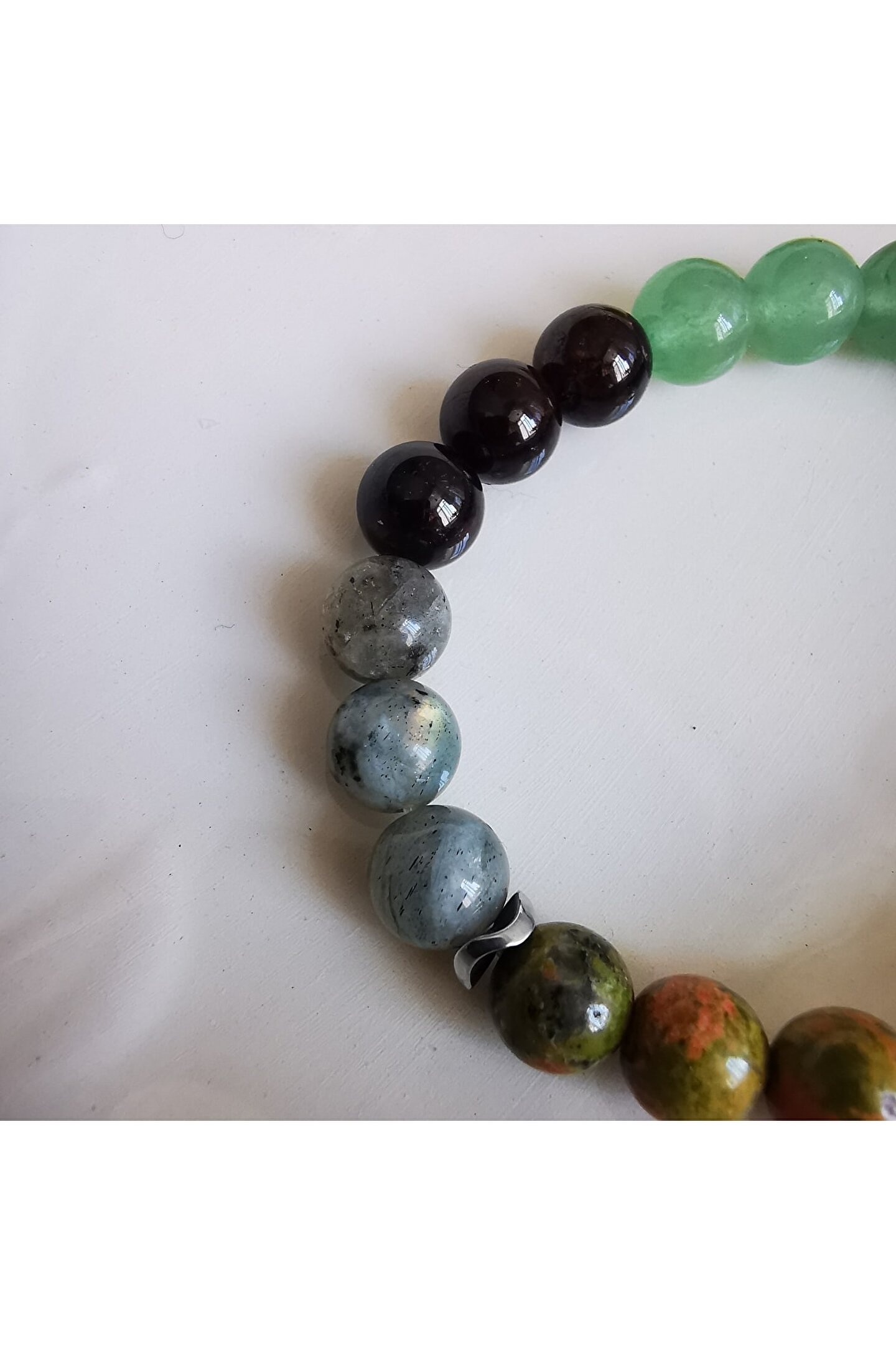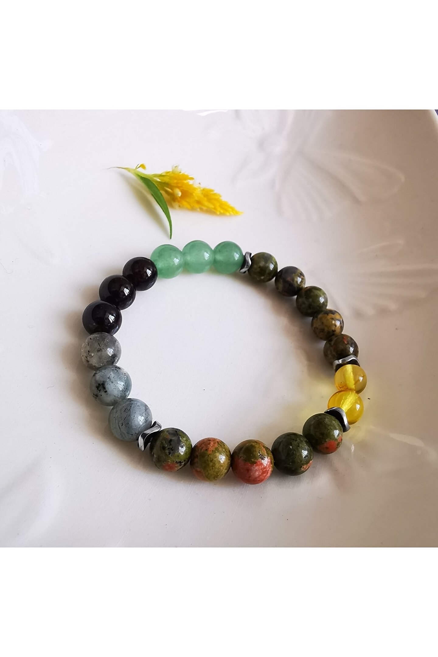 Ödem ve iltihap / kehribar, unakit, labradorit, Aventurin, garnet lal Doğaltaş bilekliği