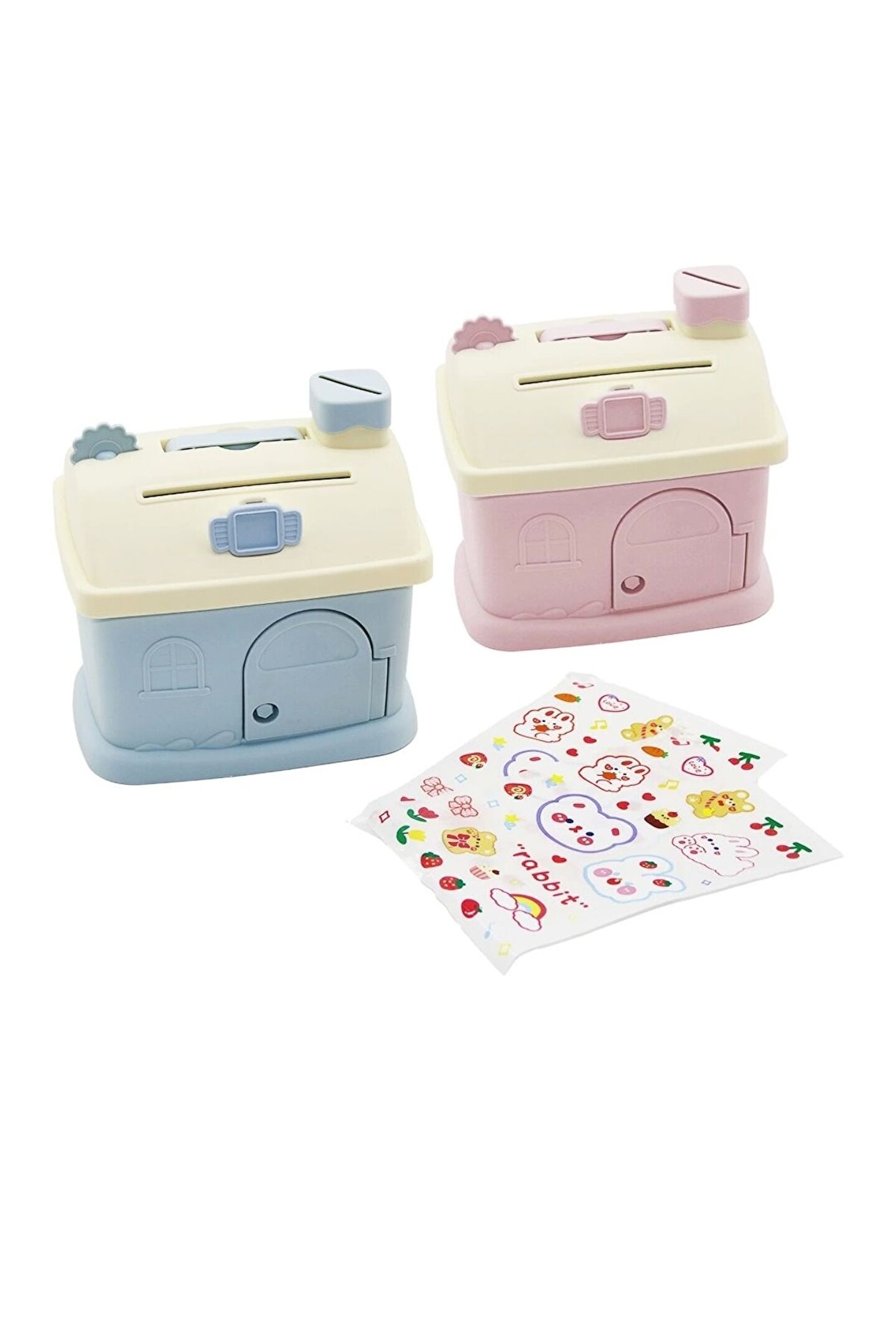 Küçük Ev Modeli Kilitli R.plastik Figürlü Çocuk Kumbara Stickerlı 12x14x9.5cm (4767)