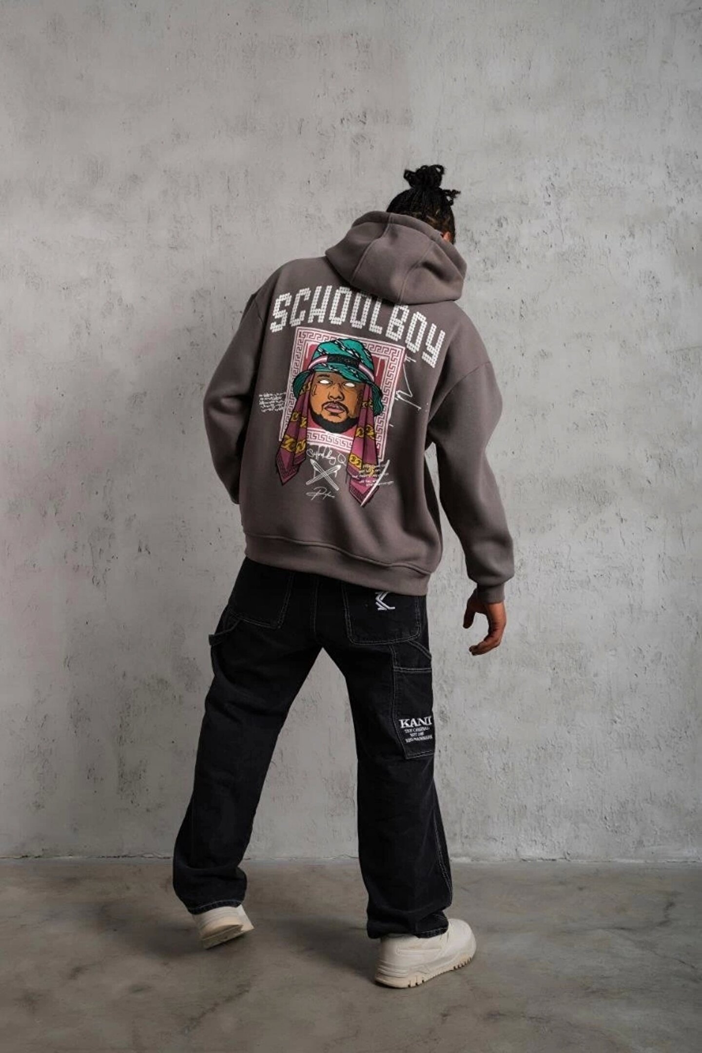 Erkek SCHOOL BOY Baskılı Kapüşonlu Sweat - Gri