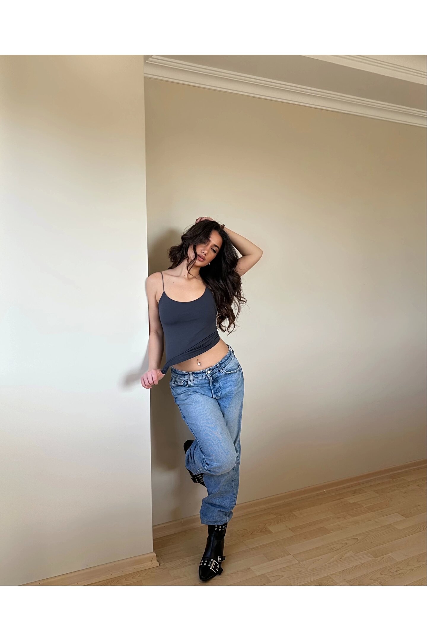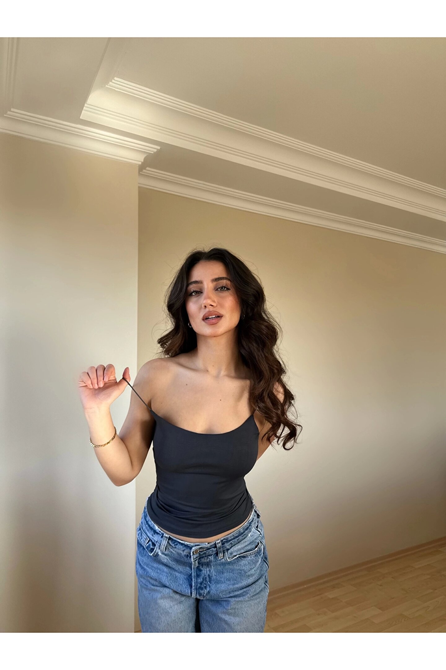 Antrasit ZRA Model Poliamid İp Askı Bluz