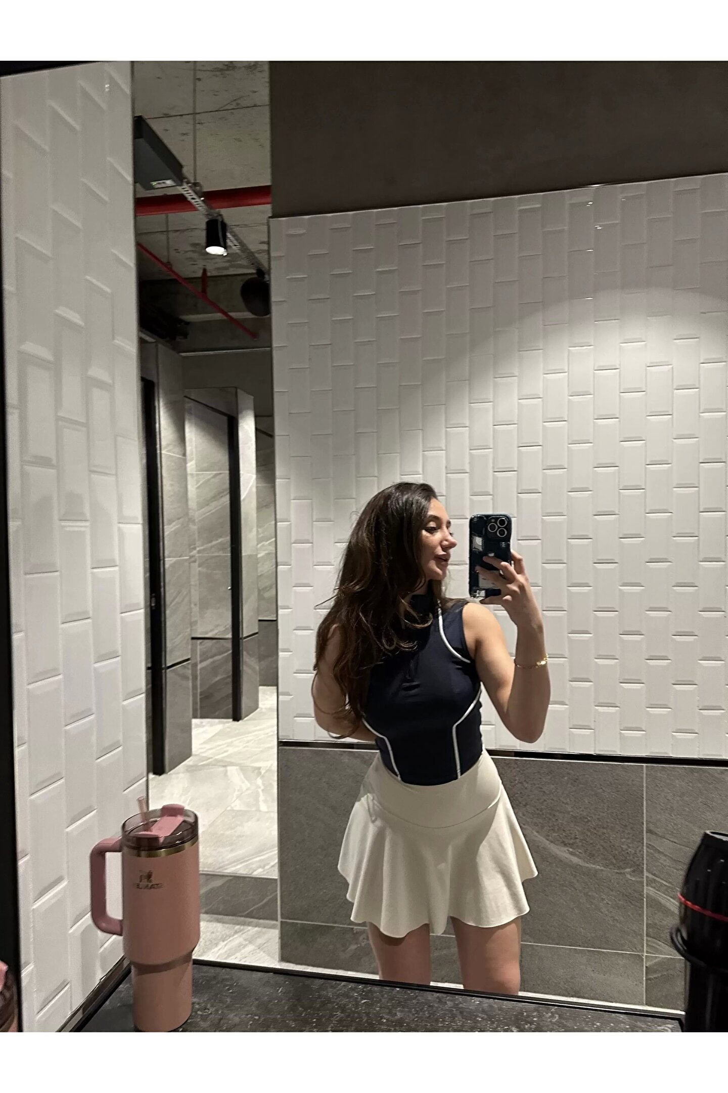 KarşıVitrin Lacivert Fermuarlı Bilyeli Bluz