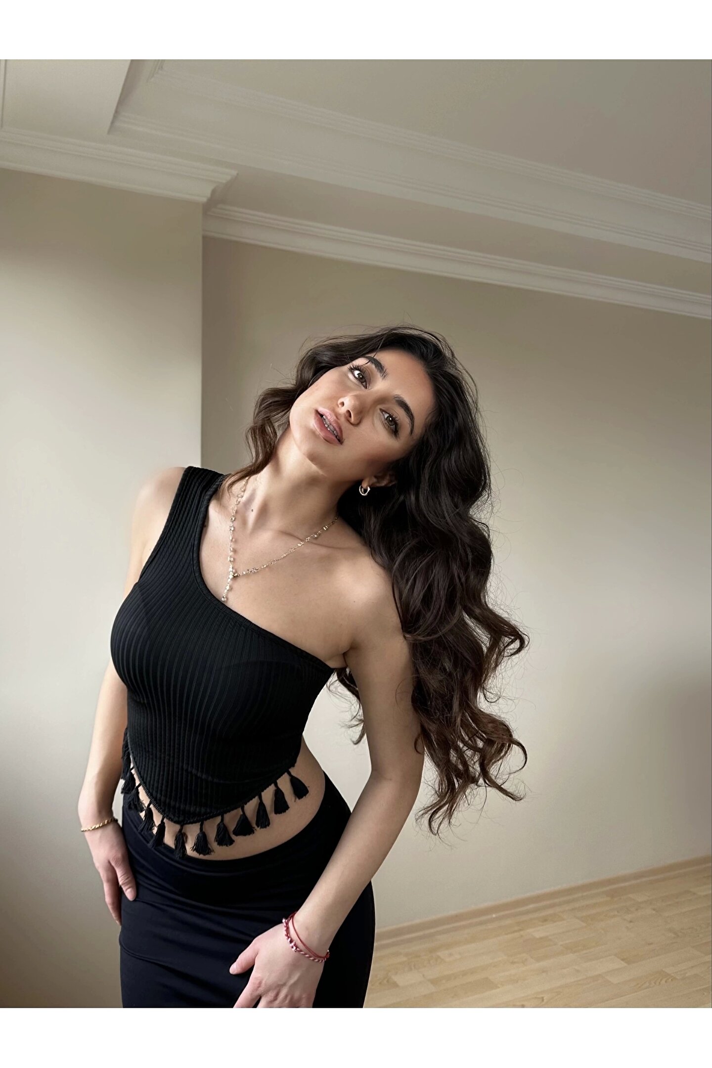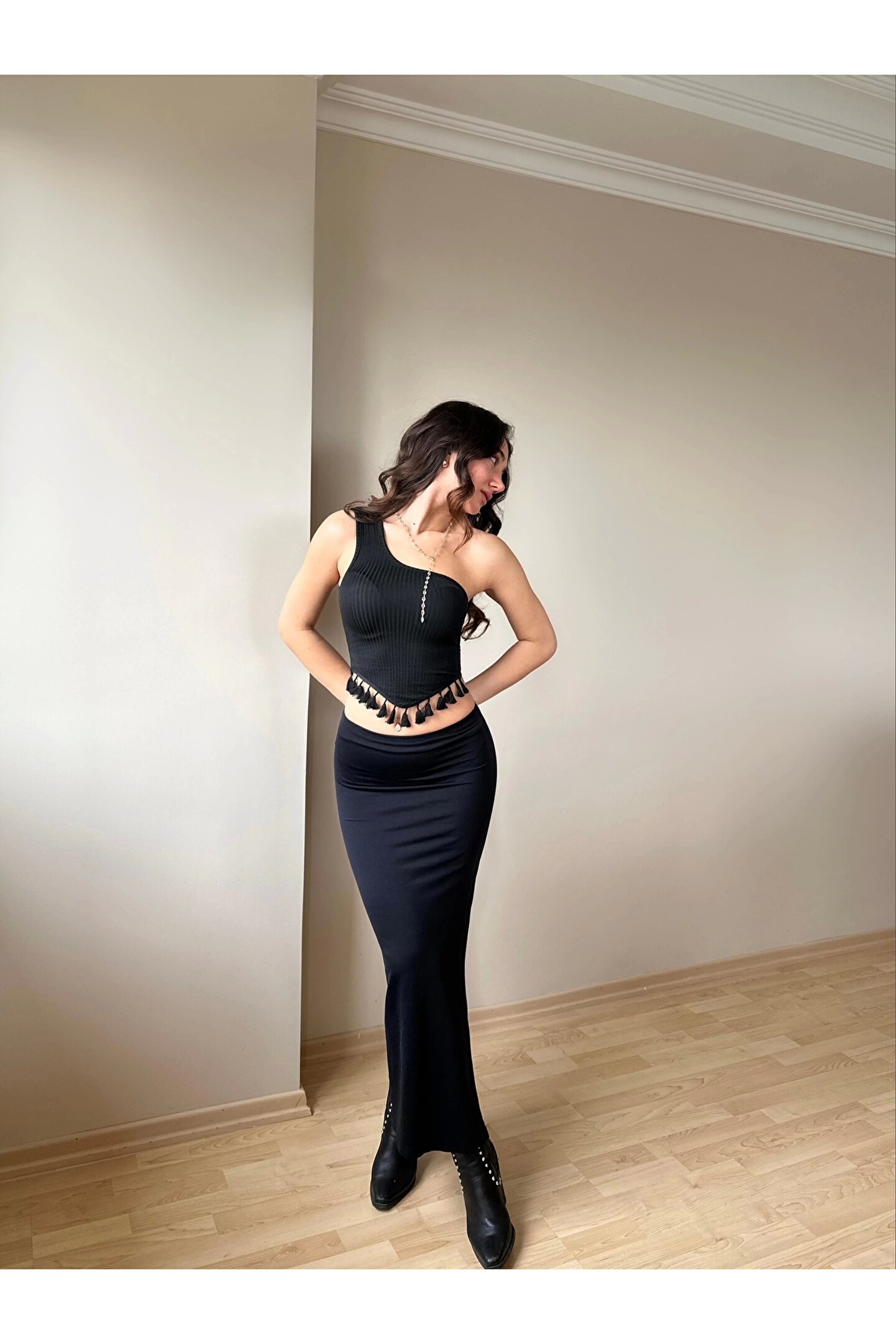 Siyah Püskül Detay Bluz