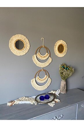 Wall Decoration Art Bohem Makrome Boncuk Detaylı Duvar Dekorasyon Ürünü 4’lü Set