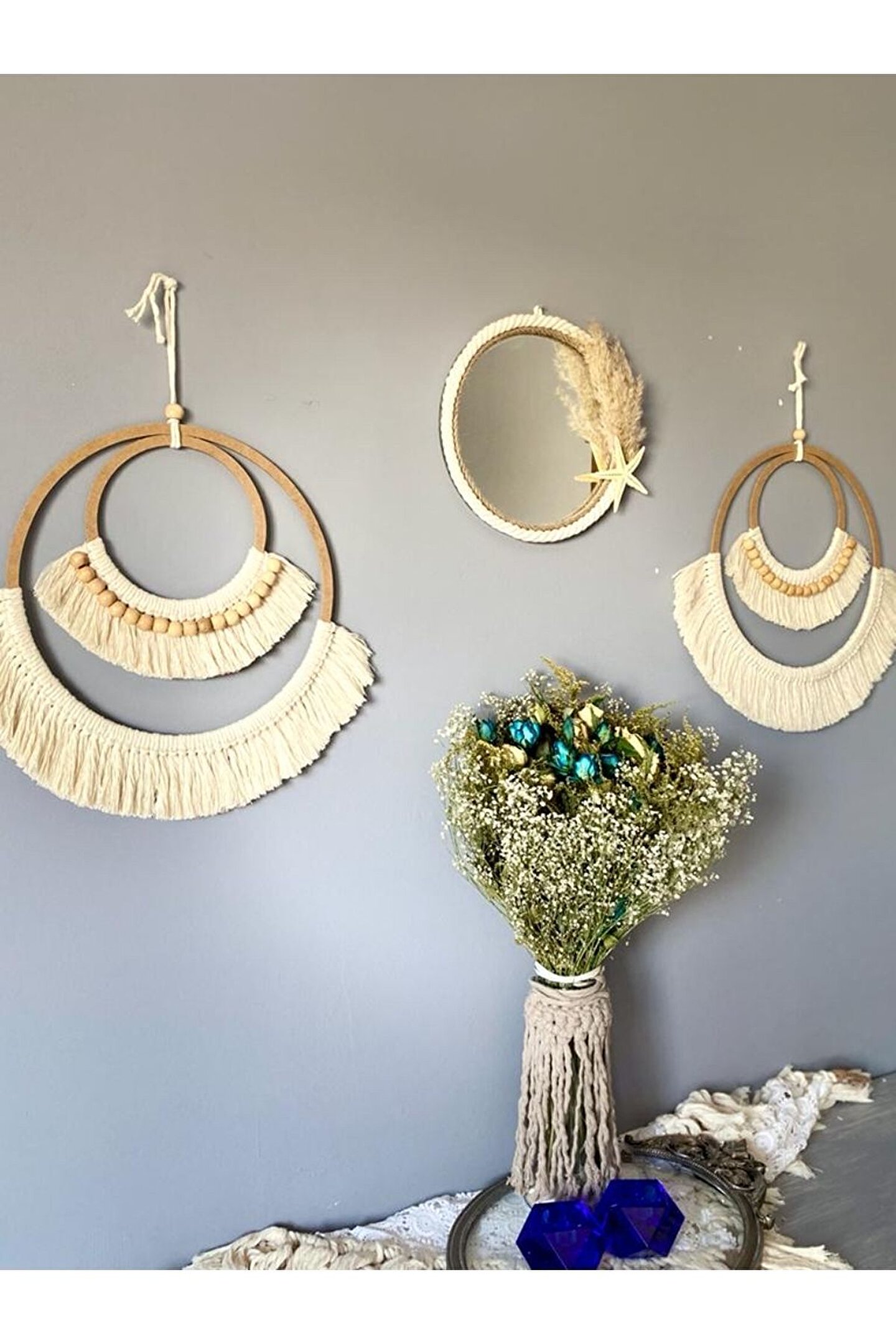Wall Decoration Art Bohem Makrome Yıldız Ve Boncuk Detaylı Duvar Dekorasyon Ürünü 3’lü Set