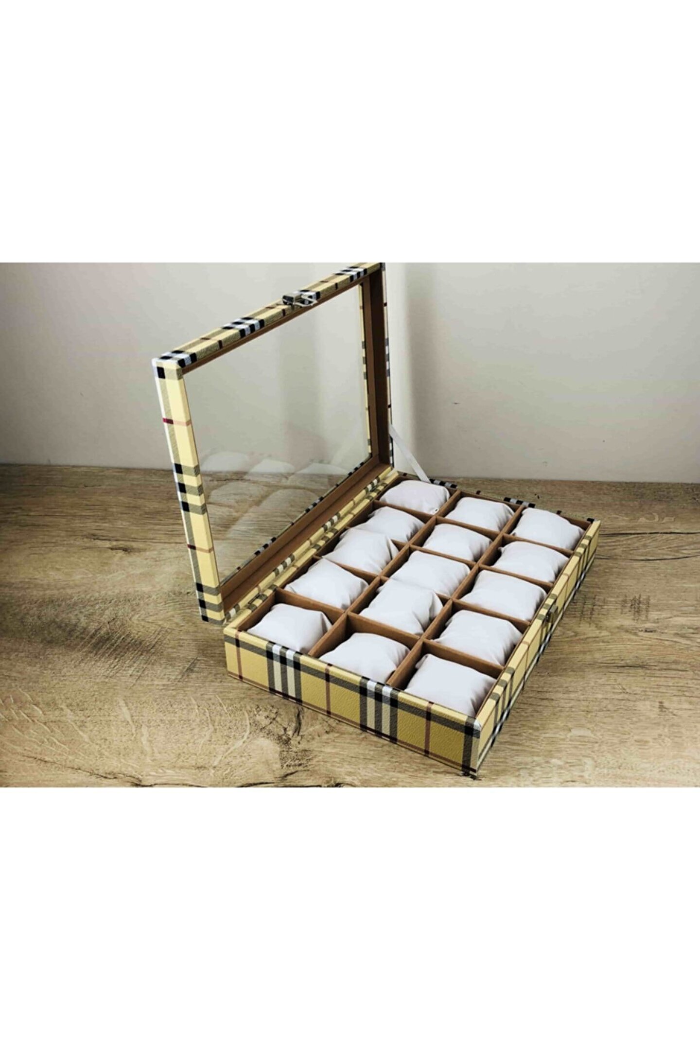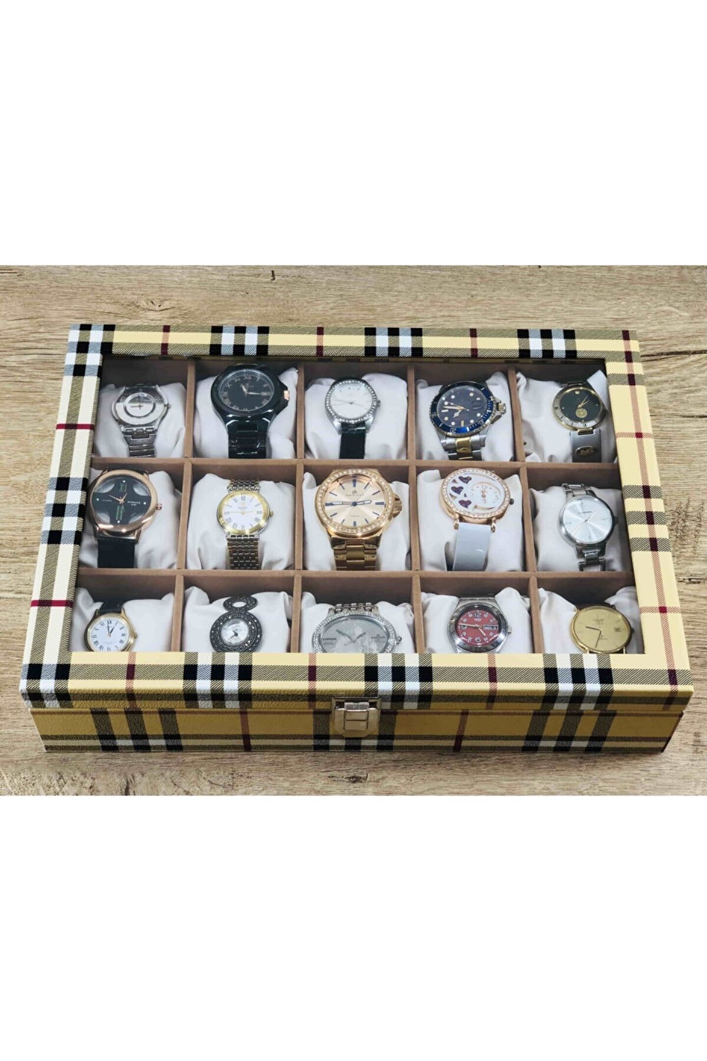 Kelepir Fırsatlar 15 Kol Saati Alabilen Büyük Boy Bileklik Kolye Ziynet Takı Saat Kutusu Desenli Kaplama
