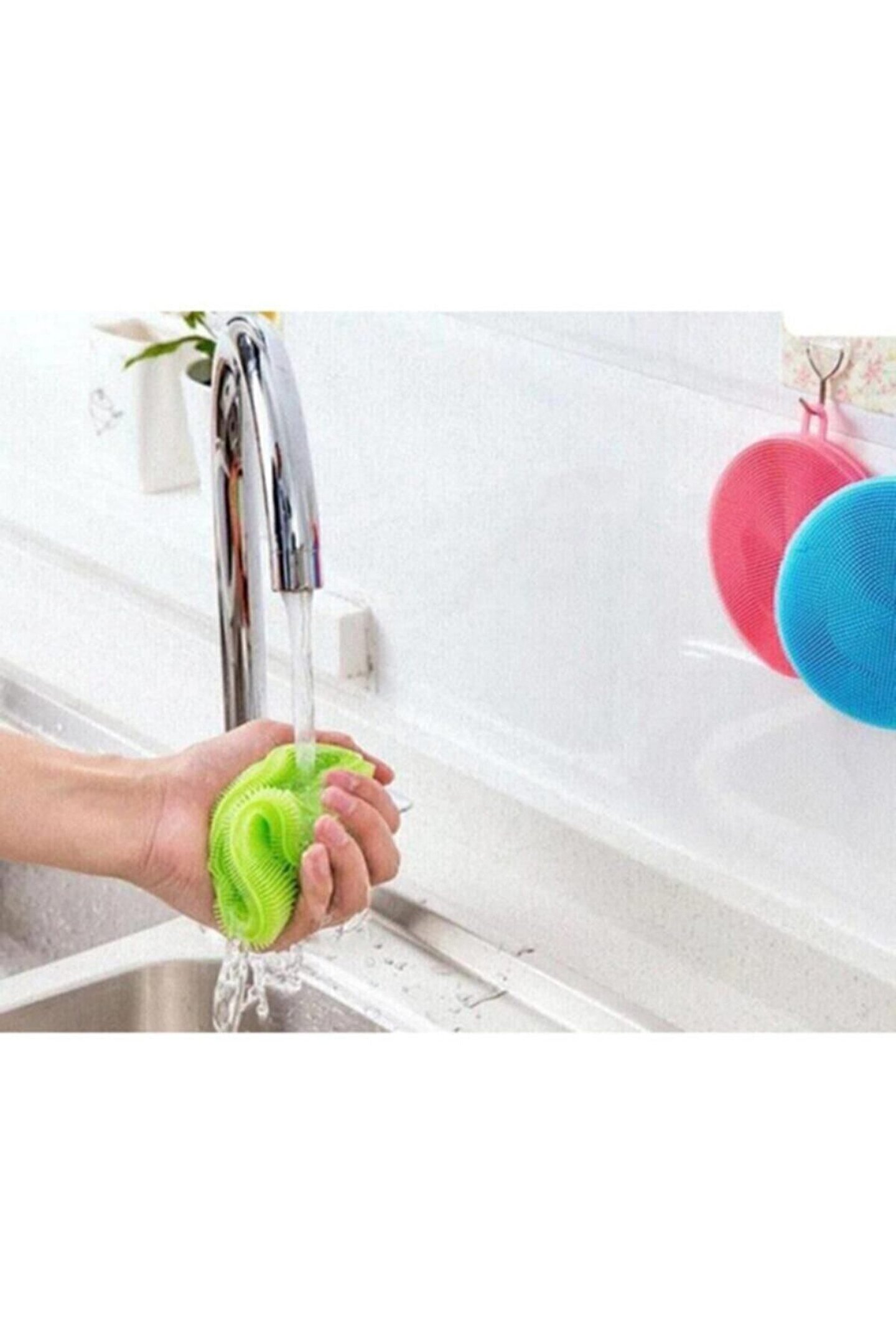 Hijyenik ve uzun ömürlü kullanım sunan 2’li silikon bulaşık süngeri, mutfakta bulaşık yıkama, meyve-sebze temizliği ve yüzey silme için idealdir.; Esnek ve dayanıklı silikon yapısı sayesinde kolayca köpürür, çizmeden temizlik sağlar.; Kullanım sonrası kolayca yıkanabilir ve hızlı kurur, bakteri oluşumunu önler.; Askı halkası ile mutfakta pratik şekilde saklanabilir.; Ürün Özellikleri: •Paket içeriği: 2 adet silikon bulaşık süngeri •Malzeme: Dayanıklı silikon •Çizmeden temizlik sağlar •Kolay yıkanabilir, hızlı kurur •Bulaşık, sebze, meyve ve yüzey temizliği için uygundur •Askı halkalı pratik tasarım