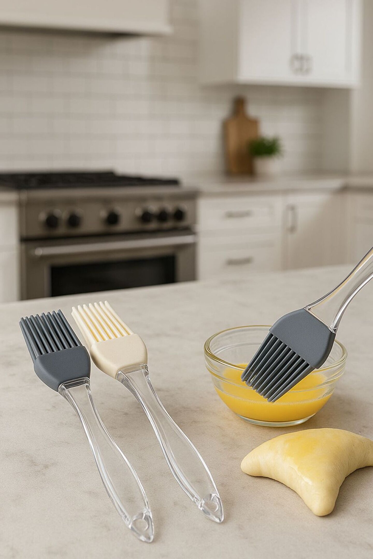 Mutfakta pratikliğin ve hijyenin vazgeçilmezi! Bu 2’li silikon yağlama fırçası seti, şeffaf ergonomik sapları ve esnek silikon uçlarıyla yumurta, yağ ve sos sürme işlemlerinde maksimum konfor sağlar.; Hamur işleri, kek, börek, ızgara, et ve tavada pişirme için ideal kullanım sunar.; Isıya dayanıklı yapısı sayesinde silikon uçlar erime yapmaz, leke tutmaz ve kolayca temizlenir.; Farklı renk seçenekleriyle mutfağınıza şıklık katar.; ; ⸻ Ürün Özellikleri: •✅ 2’li set: 1 adet krem ve 1 adet füme silikon fırça •✅ Isıya dayanıklı esnek silikon uç (230°C’ye kadar) •✅ Bulaşık makinesinde yıkanabilir •✅ Şeffaf ergonomik tutma sapı •✅ Leke tutmaz, koku yapmaz, sağlıklı malzeme •✅ Yağ, yumurta, sos sürme için ideal •✅ Renk: Füme & Krem •✅ Kullanım alanı: Hamur işleri, ızgara, et, fırın yemekleri
