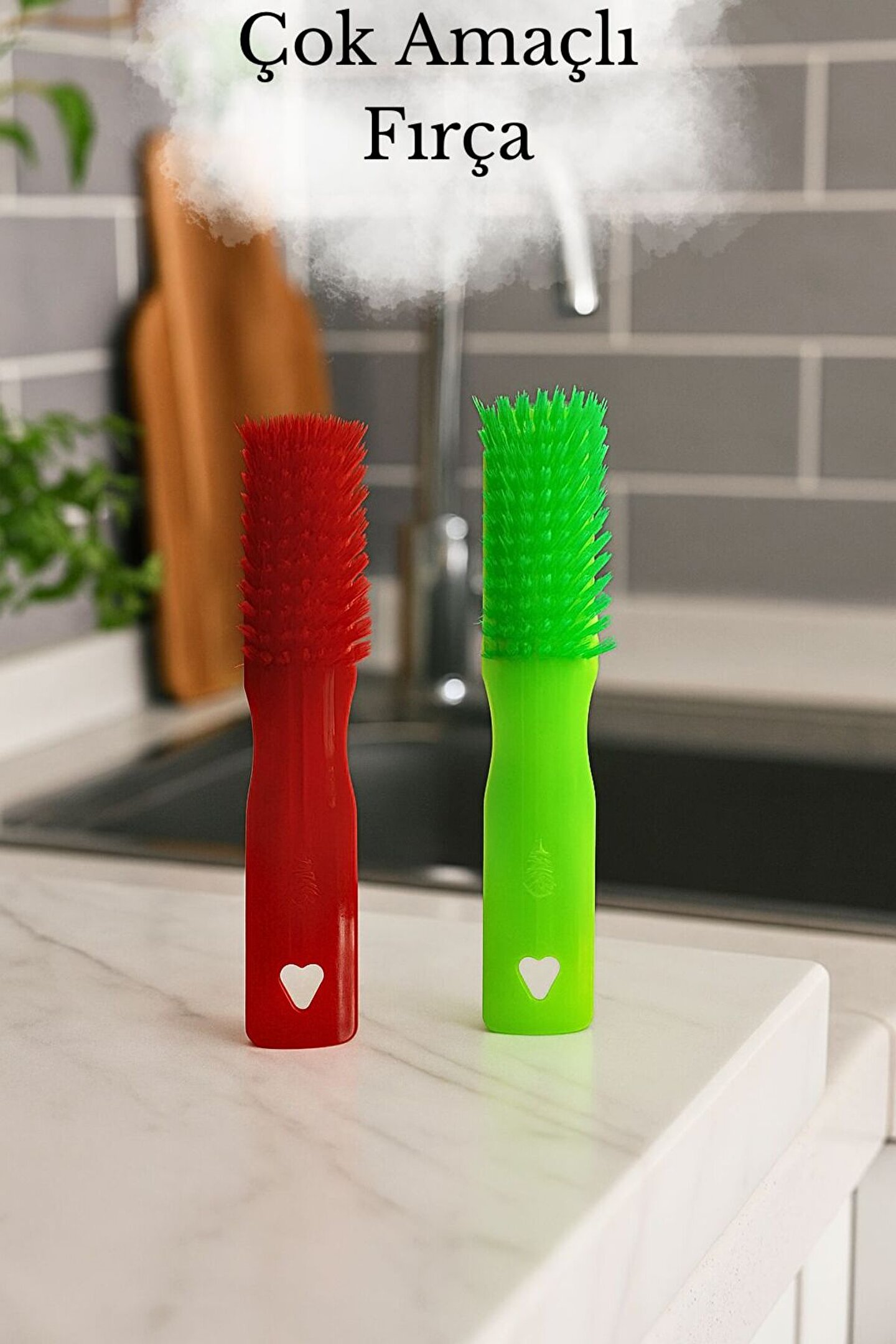 Mutfakta, banyoda, halıda veya derinlemesine temizlik gereken her alanda kullanılabilen bu çok amaçlı temizlik fırçası, sert ve yoğun kılları sayesinde zorlu kirleri kolayca çıkarır.; Kompakt yapısı sayesinde dar alanlara rahatlıkla ulaşır.; Kaliteli plastik sapı ve ergonomik tutuşu ile temizlik işlerinizi pratikleştirir.; Kalp desenli sap detayıyla hem işlevsel hem şık bir kullanım sunar.; 2 farklı renkte (kırmızı ve yeşil) gönderilmektedir.; ; Ürün Özellikleri: •Paket İçeriği: 2 Adet Temizlik Fırçası •Renk: Kırmızı ve Yeşil (karışık) •Malzeme: Dayanıklı plastik sap ve sert naylon kıllar •Kullanım Alanları: Mutfak, banyo, lavabo, ocak kenarları, halı kenarları, aralık temizliği •Sap Detayı: Asılmak için kalp desenli delik •Ergonomik ve ele oturan tutuş •Kompakt ve hafif yapı