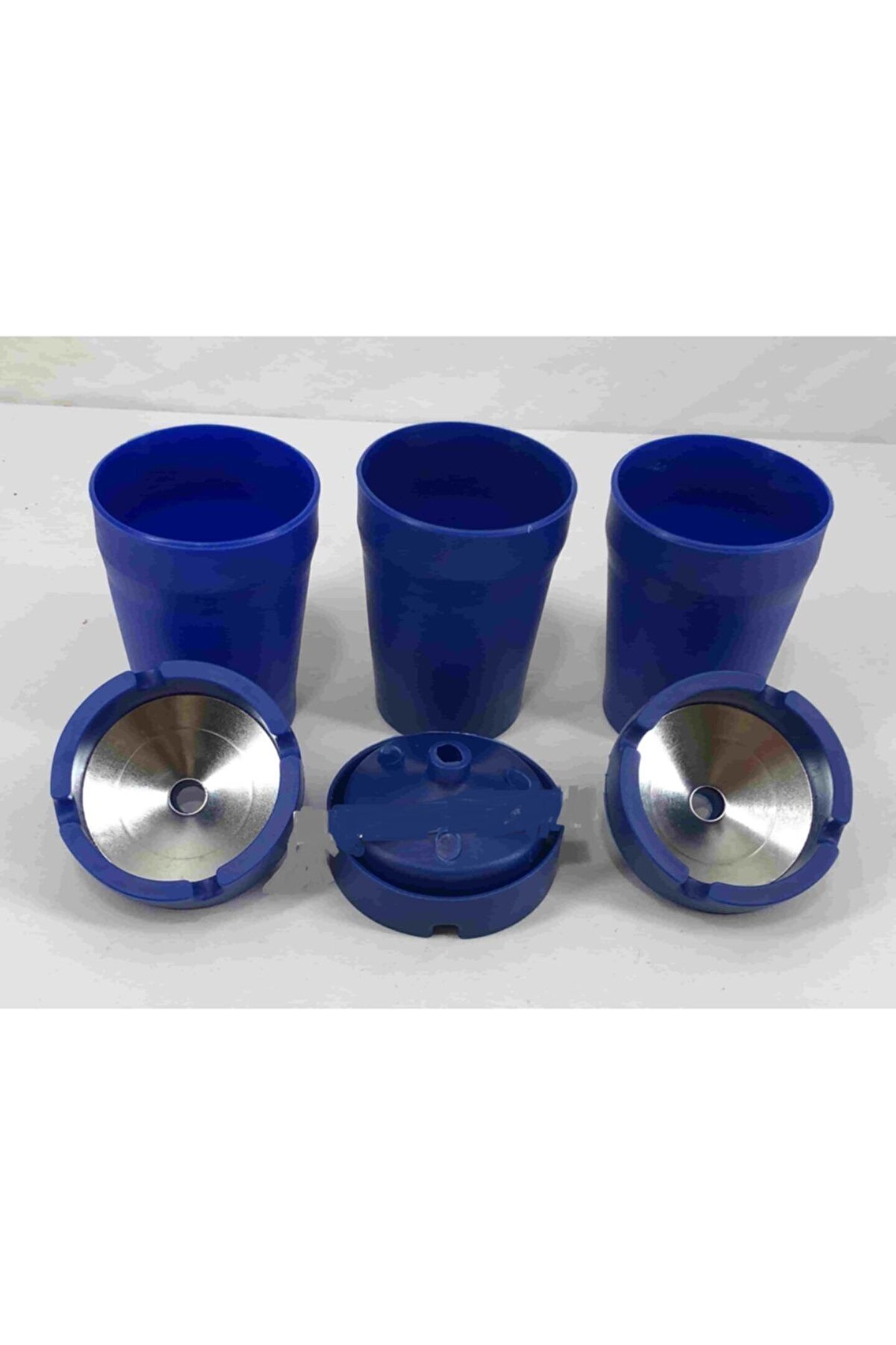 3 Tane Mavi Plastik Kapaklı Kül Tablası
