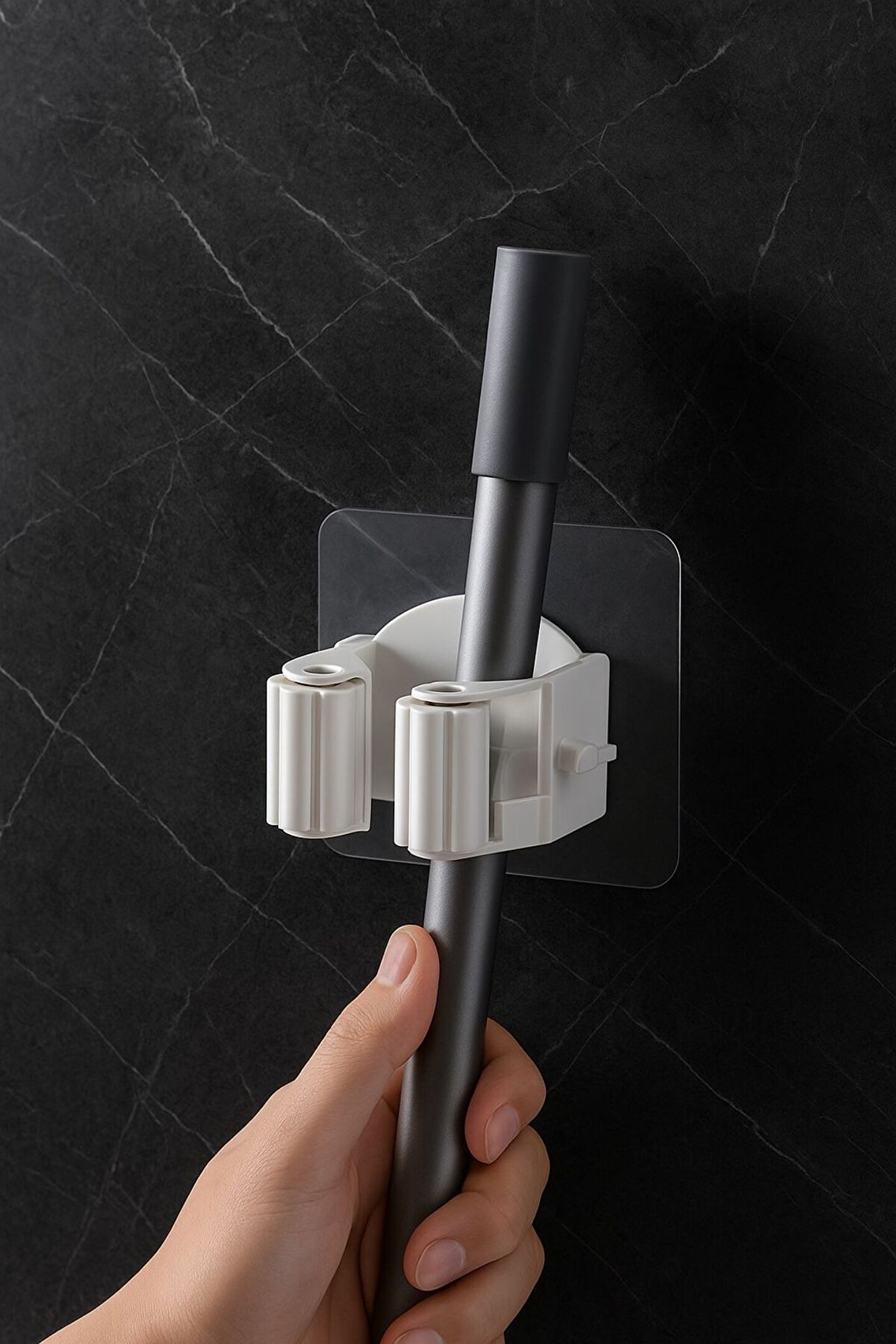 Temizlik eşyalarınızı düzenli ve erişilebilir tutmanın en pratik yolu! 4’lü Beyaz Mop ve Süpürge Tutucu Seti, mop, süpürge, fırça gibi saplı temizlik araçlarını duvara sabitleyerek hem yer tasarrufu sağlar hem de dağınıklığı önler. Güçlü yapışkanlı yapısı sayesinde delme işlemi gerekmeden fayans, cam, mermer gibi düz yüzeylere kolayca monte edilir. Modern ve sade beyaz rengi ile her ortama uyum sağlar, temiz ve şık bir görünüm sunar.