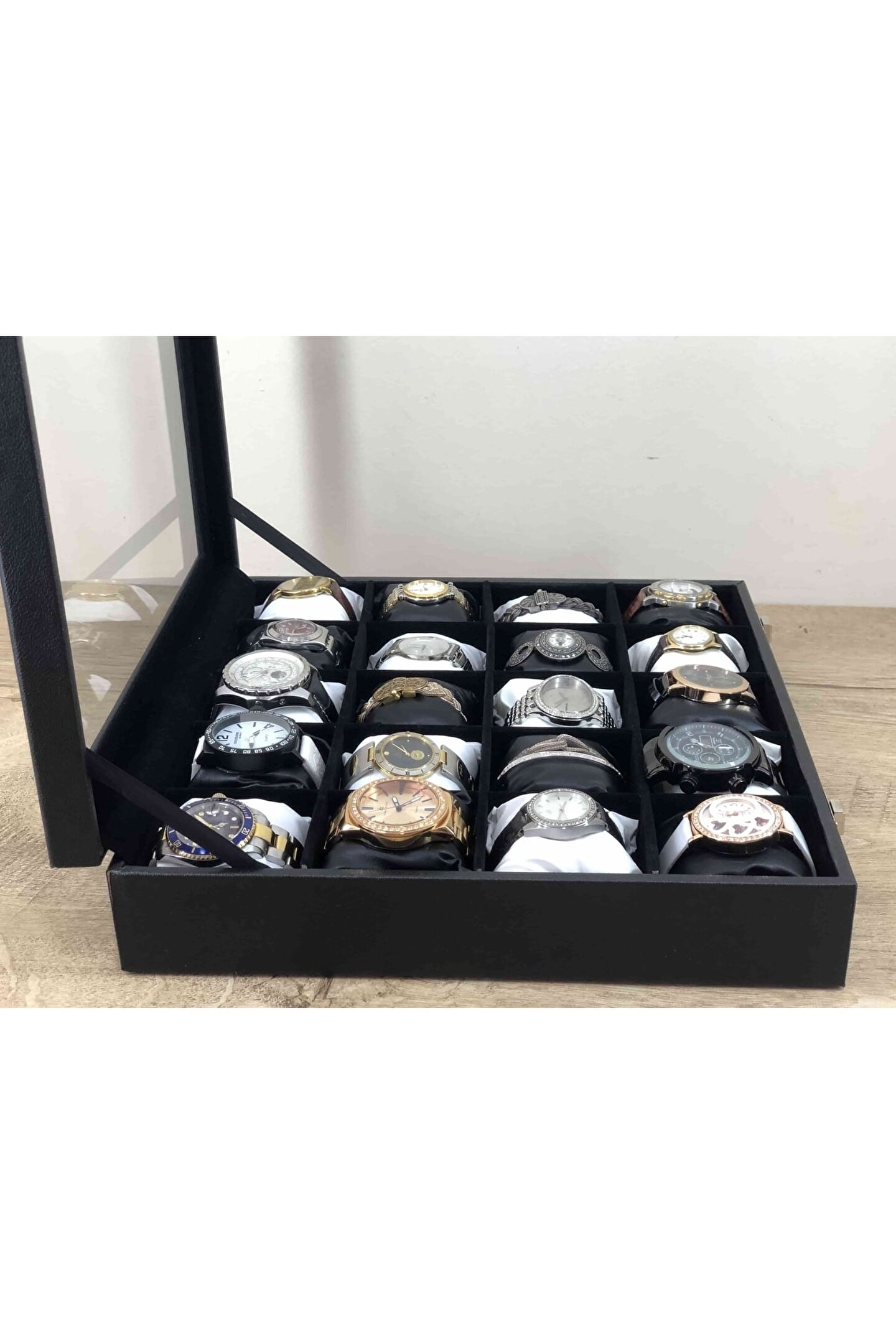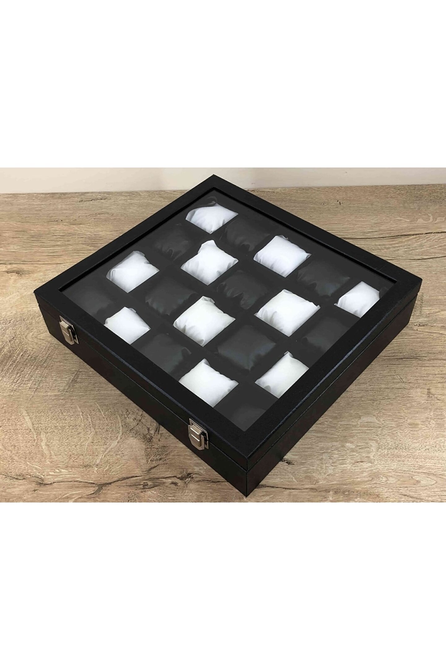 - Ahşap malzeme üzerine deri kaplama ile zenginleştirilmiş, şık ve dayanıklı bir tasarıma sahip; - İç kısmında kadife dokusuyla lüks bir görünüm sunan yastıklama özelliği; - 20 gözlü yapısı sayesinde saatleriniz, takılarınız ve diğer değerli eşyalarınız için geniş saklama alanı sağlar; - Siyah ve beyaz renk kombinasyonu ile modern ve zarif bir dekoratif kutu alternatifi sunar;