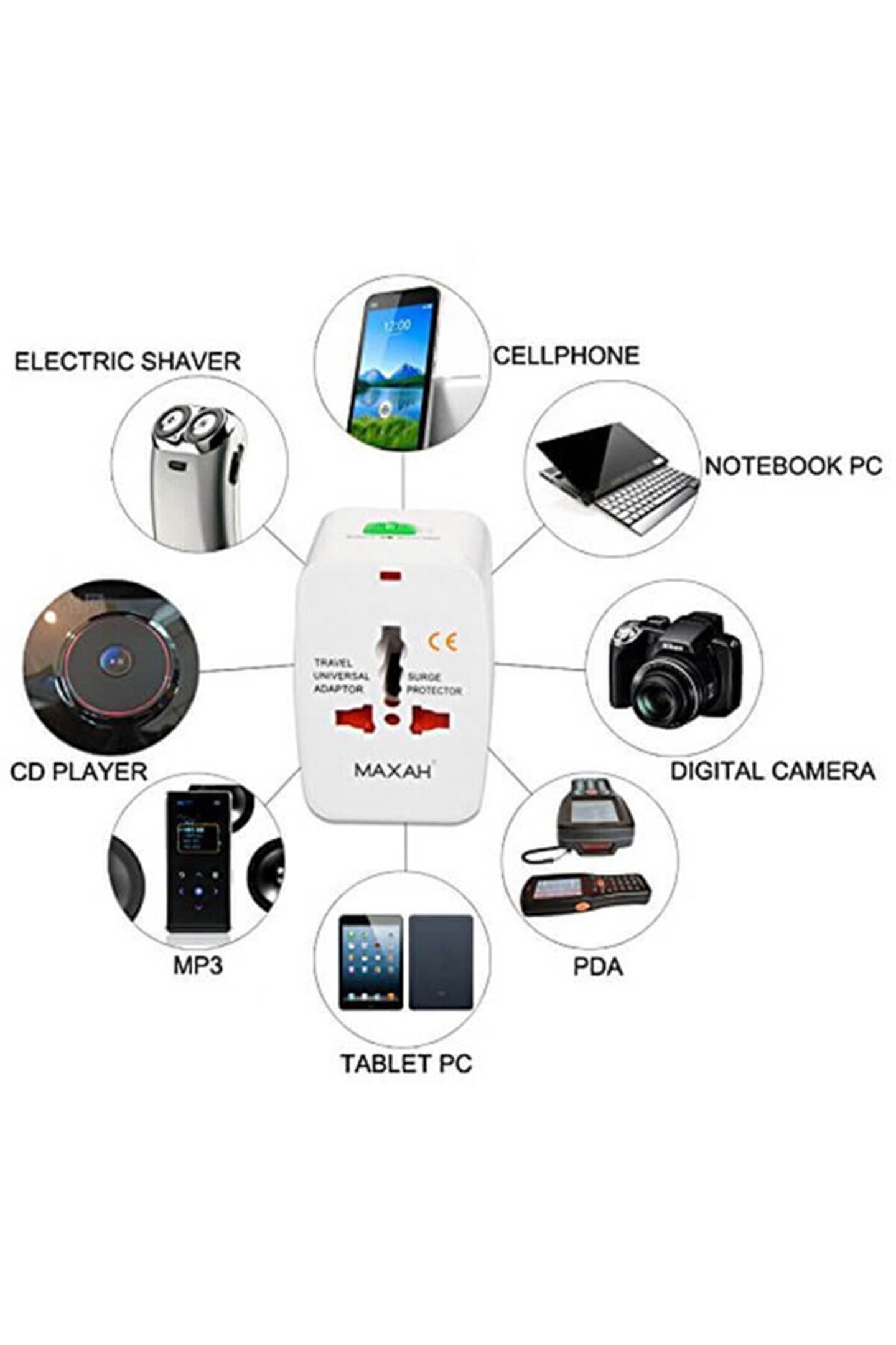 Bu universal adaptor de bulunan 4 adet farklı bağlantı giriş ve çıkışı sayesinde tüm uluslar arası yolculuklarda taşıyabilir dalga koruma sayesinde de güvenle kullanabilirsiniz.