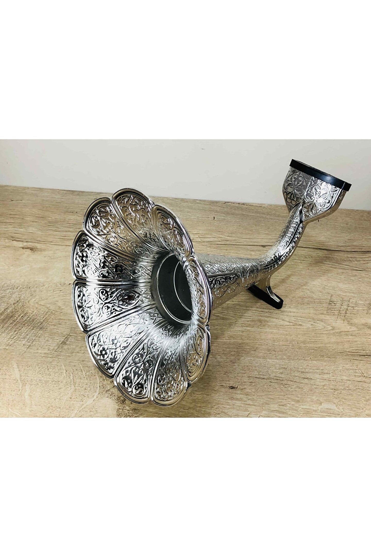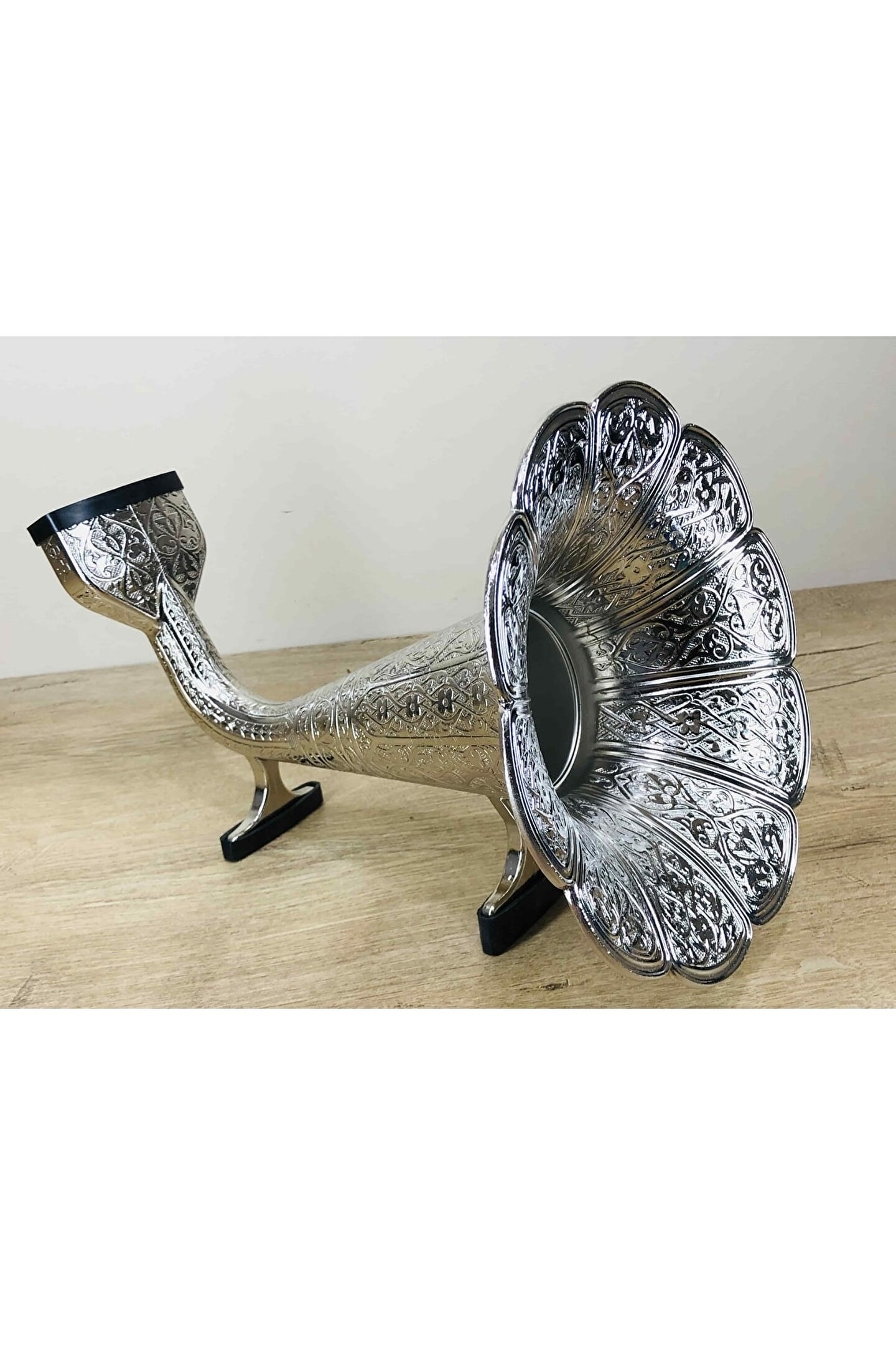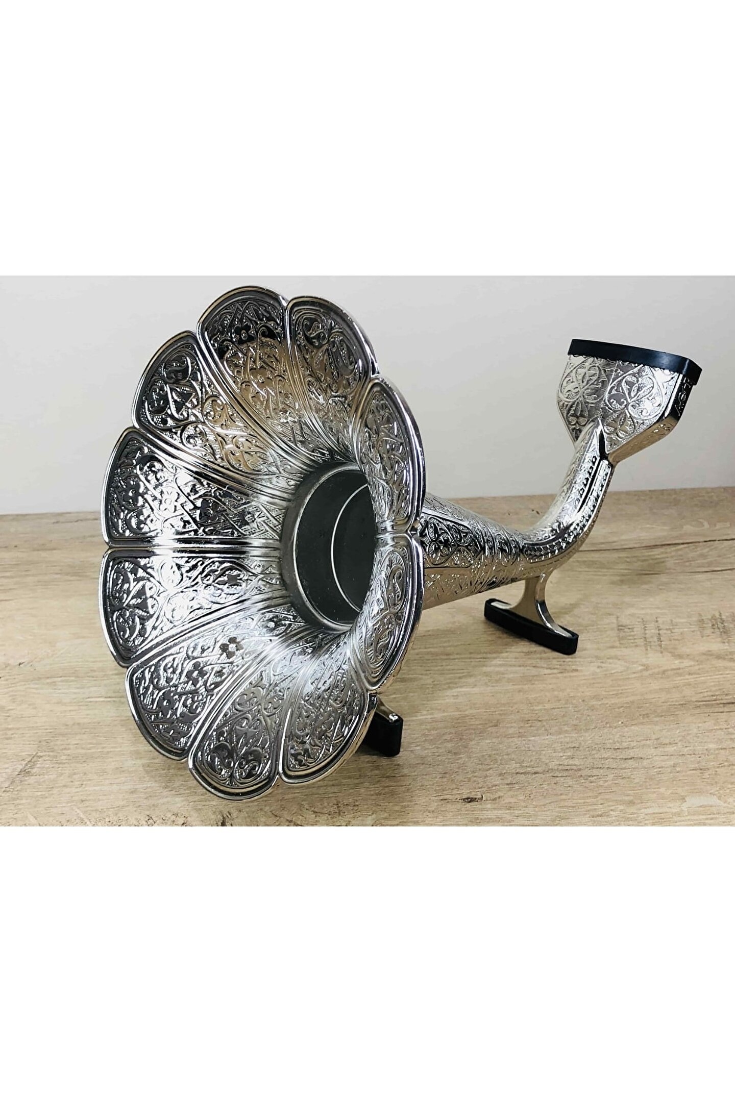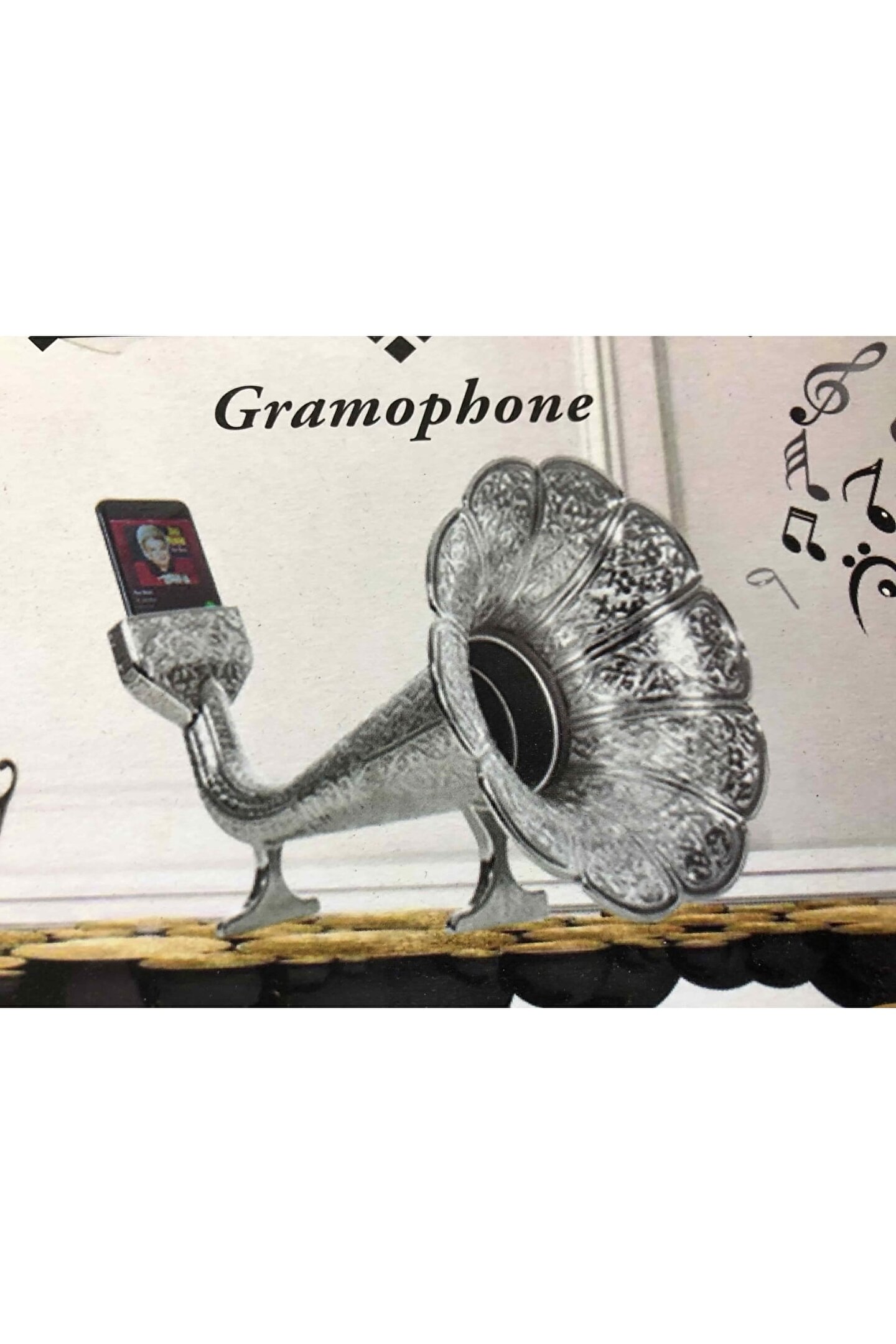 ÜRÜNÜMÜZ GERÇEK METALDEN ÜRETİLMİŞ TÜRK MALIDIR ; DEKORATİF ANTİK TARZDA SÜSLEMELERLE BEZENMİŞTİR ; GRAMOFON GİBİ CEP TELEFONLARININ SESİNİ YANKILAR ; Ürün Özellikleri ; Kararmaya Karşı Özel Olarak Metal malzemeden üretilmiştir.. ; Telefonunuzdan çıkan sesi kaliteli bir şekilde yükseltir ; Tüm Telefonlara Uyumlu Dekoratif Şık Gramofon Hunisi. ; Ürün Ebatları ; Uzunluk : 35 cm ; Genişlik : 24 cm ; Yükseklik: 25 cm ; Ağırlık: 1841 Gram ; Kullanımı ; Kimyasal İçerikli Deterjan vs. Temizlik Maddeleri ile Silmeyiniz ; Bulaşık Makinasında Yıkamayınız ; Islak, Nemli veya Güneşli Ortamlarda Bırakmayınız ; Sadece Kuru Bez İle Siliniz ;