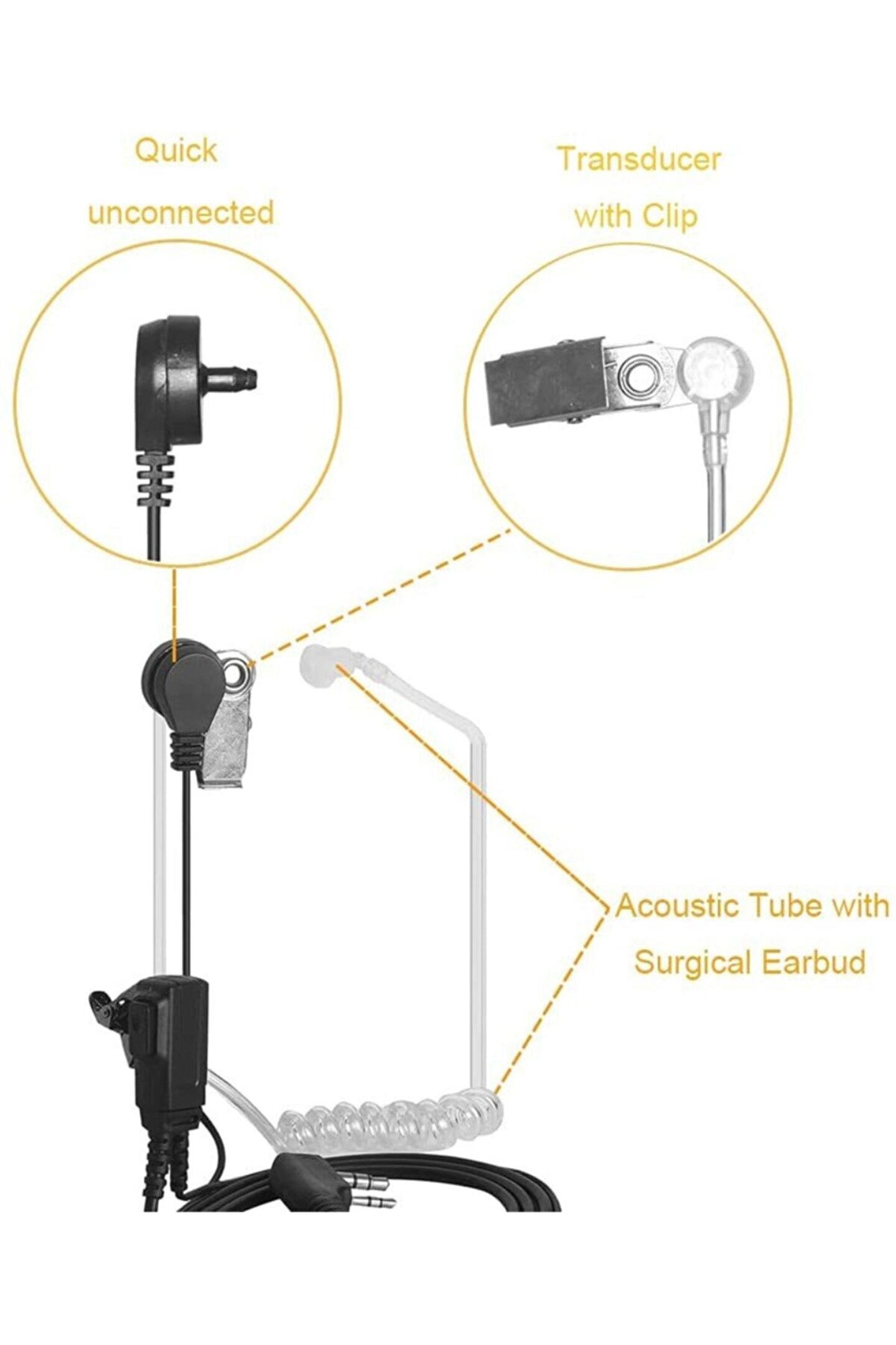 PMR TELSİZ KULAKLIĞI, ÖZELLİKLER Şeffaf, Spiral Kulakiçi, Bas konuş mikrofonlu. ; 2pin soket 3.5mm 2.5mm. ; Bknz : Ürün resimleri Model : akustik tüp kulaklık Walkie Talkie tipi: taşınabilir MIC gizli akustik tüp: Kenwood tip kulaklık Walkie Talkie aksesuarları: kullanışlı radyo için Kulak içi kulaklık: iki yönlü radyo için Iki yönlü telsiz: taşınabilir radyo kulaklık Kulaklık: 2 Pin PTT MIC Adet: 1 Açıklama: Hem sağ hem de sol kulak rahatça takılabilir. ; Basma düğmeli uzaktan bir mikrofon, her yere klipslenebilir. ; Kulak tomurcuğunu bağlayan şeffaf tüp, gizli servis ajanı veya vücut koruyucusu gibi görünmenizi sağlar ve sağlığınızı radyo elektromanyetik dalga radyasyonundan korur. ; Kulaklık/hoparlör, konuşmalarınızı özel tutan kulağınıza rahatça sığar. ; Kablonun uzunluğu (ptt'ye fiş): 135 cm. ; Iki pimli standart çap: kulak 3.5mm stereo (üst pim). ; Mic 2.5mm stereo (alt pim). ; Iki pimli alan: 11mm. ; Ağırlık: 35g. ; Renk: siyah / şeffaf spiral UYUMLU BAZI MODELLER WOUXUN ,BAOFENG :WOUXUN: KG-UVD1P, KG-UV6D, KG-UV8, KG-669 , KG-679, KG-689, KG-659,KG-699 ,KG-801,KG-703, KG-UV2D KG-UV3D BAOFENG UV-6, UV-5R, UV-5RA, UV-5RB, UV-5RC, UV-5RE, UV-3R PLUS, BF-666S BF-777S BF-888S PUXİNG:PX-777, PX-666, PX-328, PX-888, PX-888K, PX-333, PX-325, PX-358, PX-359, PX-728. ; PX-555, PX-628 KENWOOD: TK-255, TK-355, TK-260, TK-360, TK-270, TK-370, TK-272, TK-372, TK-273, TK-373, TK-278, TK378 etc TK-260G, TK-270G, TK-272G,TK-278G, TK-360G, TK-370G, TK-373G,TK-378G etc TK-240, TK-340, TK-249, TK-349, TK-250, TK-350, TK-253, TK-353, etc TK-430, TK-431 etc TK-2107, TK-3107, TK-2100, TK-3100, TK-2101, TK-3101, TK-2102, TK-3102, TK-2118, TK-3118 etc TK-2201, TK-3201, TK-2202, TK-3202, TK-2206, TK-3206, TK-2207, TK-3207 etc TK-2160, TK3160 etc TK-2160, TK3160, etc TH-F6A, TH-F7E, TH-F7, TH-F6, TH-G71, TH-K2AT, TH-K4AT LİNTON:LT-2288, LT-3288, LT-6288, LT-5288, LT-3188, LT-2188, LT-3260, LT-2268, LT-3268 ,LT-6188 WEIERWEI:VEV-3288S,V-1000 , VEV-V8 FDC:FD-6288, FD-268,FD-288,FD-289,FD-278 QUANSHENG:TG-UV SURECOM:TG-UV S TYT MİDLAND WLN Zetcom Hty Teknoben Tekcom 446;