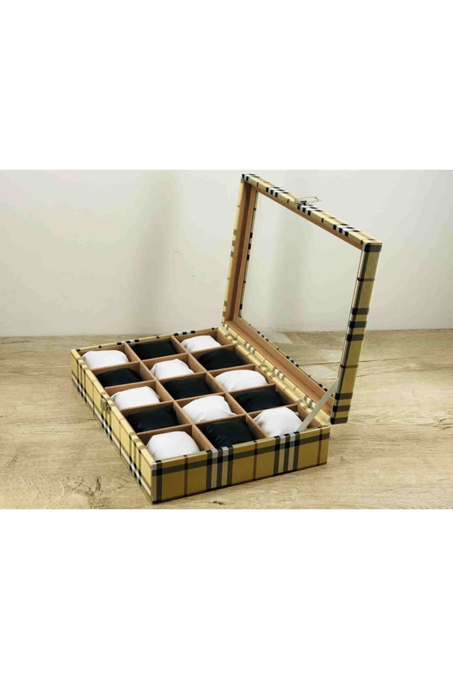 %100 Orijinal Türk Malıdır Türkiye'de Üretilmiştir Çin Malı Değildir İmalattan Halka Satış Fabrikasyon Yapımı Değildir Tamamen El Yapımıdır 15 adet Büyük Boy Gözlüdür 15 Adet Siyah Bayez Vinlex Kaplama Yastıklar Silikon Dolgulu Yumuşak yastıklar Her Boyuttaki Saatlere Kolaylıkla Uyar Spor ve Klasik Saatler için Uygundur Bayan ve Erkek Modellerine Uyumludur Yurt Dışına Gönderim ve İmzalı Teslimat vardır BOYUTLARI : Dış Kutu Boy : 241mm Dış Kutu En : 341mm. ; Dış Kutu Yükseklik : 81mm. ; İç Göz Boy : 7.1mm. ; İç Göz En : 6.1mm. ; İç Göz Yükseklik : 7.1mm. ; Kilit En : 25mm. ; Kilit Boy : 32mm. ; Mentese Boy : 18mm. ; Mentese En : 21mm. ; Resimler Orjinal kendi çekimlerimizdir Resimdeki Saat Kutusu Gönderilicektir Ürünlerin Hepsi Stoklarımızda Mevcuttur Stoktan Aynı gün Anlaşmalı Kargo ile Adresinize Gönderilmektedir Ana Gövde : 5mm. ; Ahşap Gövde Üstü : 2mm Mukavva İç Kaplama :;