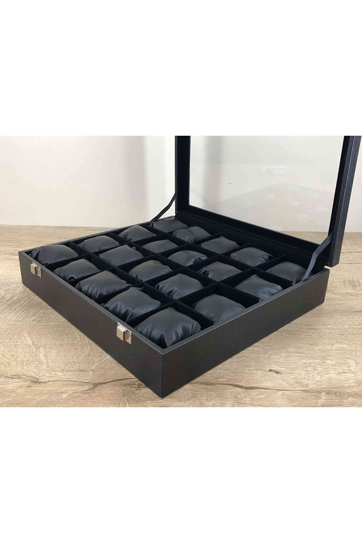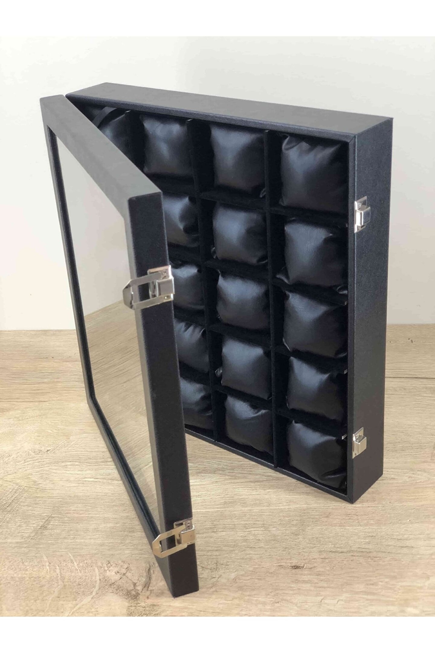 Şık ve zarif tasarımıyla dikkat çeken siyah deri kaplama, her türlü dekorasyona kolayca uyum sağlar; 20 adet kol saati için geniş iç hacmiyle, saatlerinizi düzenli ve korunaklı bir şekilde saklamanızı sağlar; Deri malzemesi sayesinde dayanıklılık ve uzun ömürlü kullanım sunar; Kolay erişilebilir bölme düzeni ile saatlerinizi hızlıca bulmanızı ve kullanmanızı kolaylaştırır;