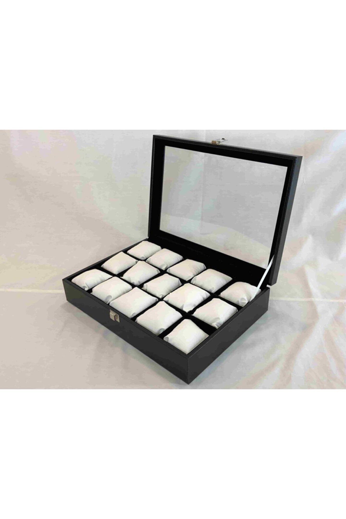 Içi Siyah Kadife Kumaş Kaplama Beyaz Yastıklı Saat Bileklik Takı Kutusu