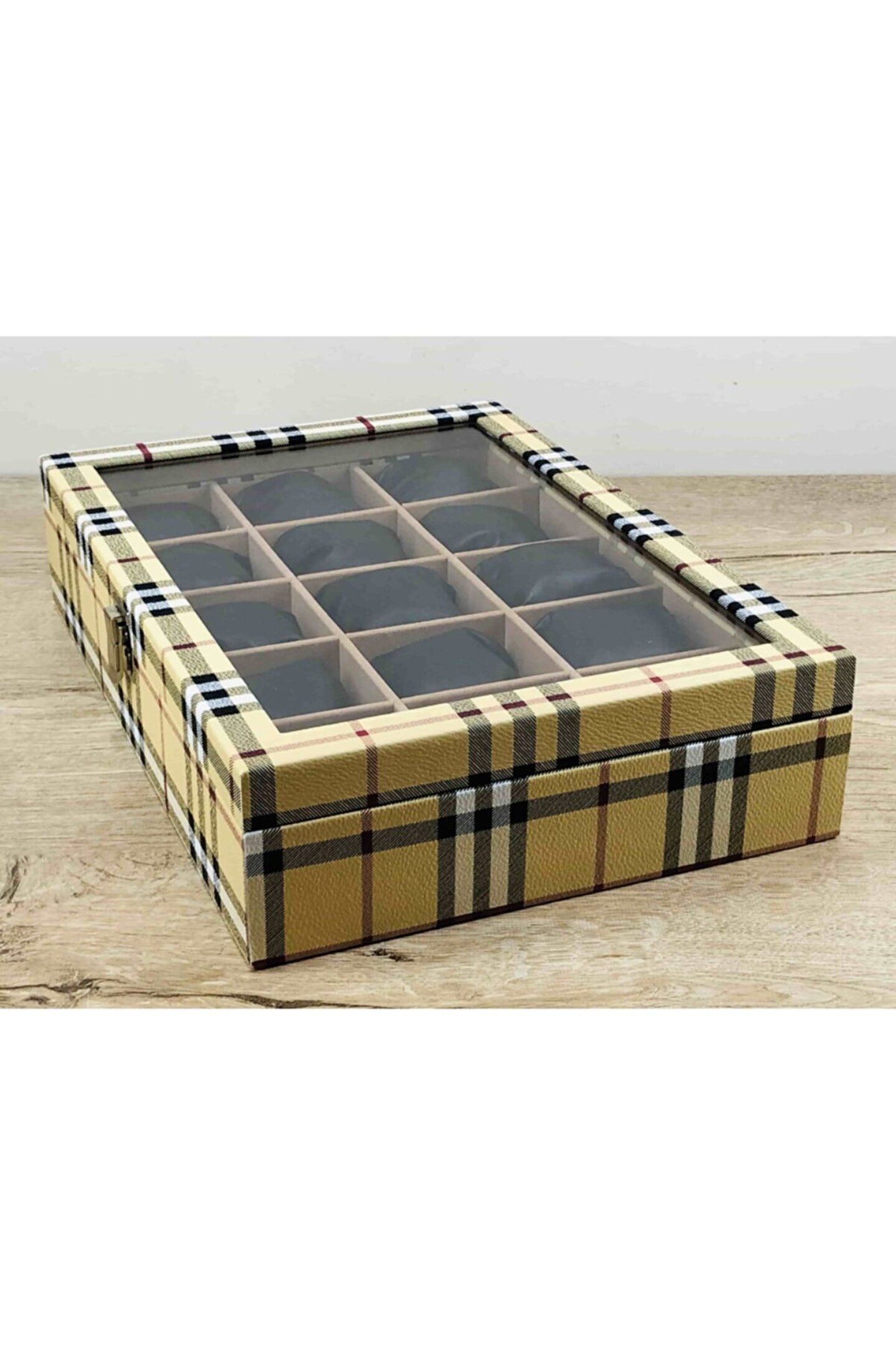 Kelepir Fırsatlar Iskoç Ekoseli Sarı Yerli El Işi Üretim Büyük Boy Kol Saatleri Için Takı Kolye Saat Kutusu Cam Kapak