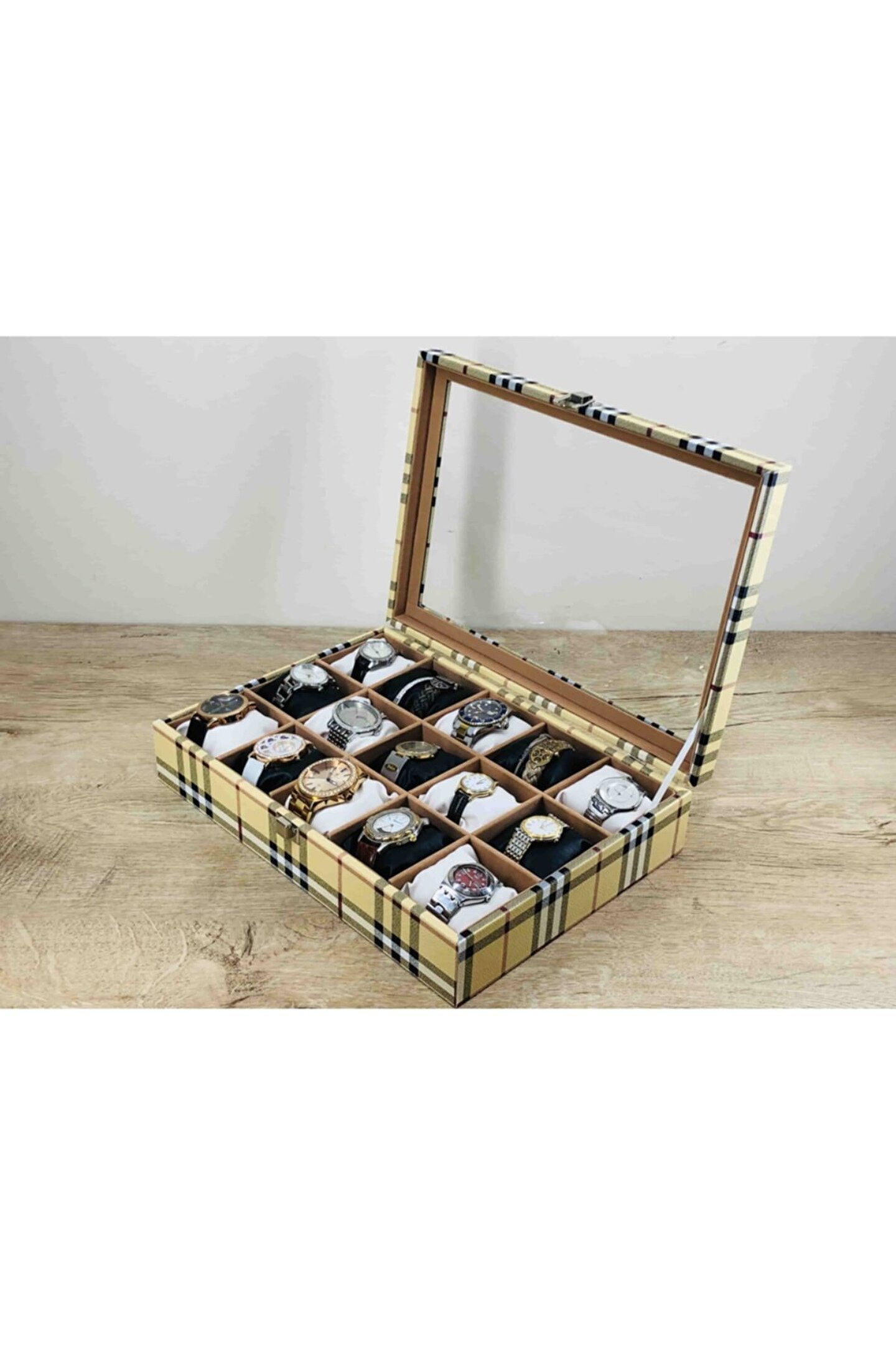 %100 orijinal türk malıdır türkiye'de üretilmiştir çin malı değildir imalattan halka satış fabrikasyon yapımı değildir tamamen el yapımıdır 15 adet büyük boy gözlüdür 15 adet siyah bayez vinlex kaplama yastıklar silikon dolgulu yumuşak yastıklar her boyuttaki saatlere kolaylıkla uyar spor ve klasik saatler için uygundur kadın ve erkek modellerine uyumludur yurt dışına gönderim ve imzalı teslimat vardır boyutları : Dış kutu boy : 241mm dış kutu en : 341mm. ; Dış kutu yükseklik : 81mm. ; Iç göz boy : 7.1mm. ; Iç göz en : 6.1mm. ; Iç göz yükseklik : 7.1mm. ; Kilit en : 25mm. ; Kilit boy : 32mm. ; Mentese boy : 18mm. ; Mentese en : 21mm. ; Resimler orjinal kendi çekimlerimizdir resimdeki saat kutusu gönderilicektir ürünlerin hepsi stoklarımızda mevcuttur stoktan aynı gün anlaşmalı kargo ile adresinize gönderilmektedir ana gövde : 5mm. ; Ahşap gövde üstü : 2mm mukavva iç kaplama;