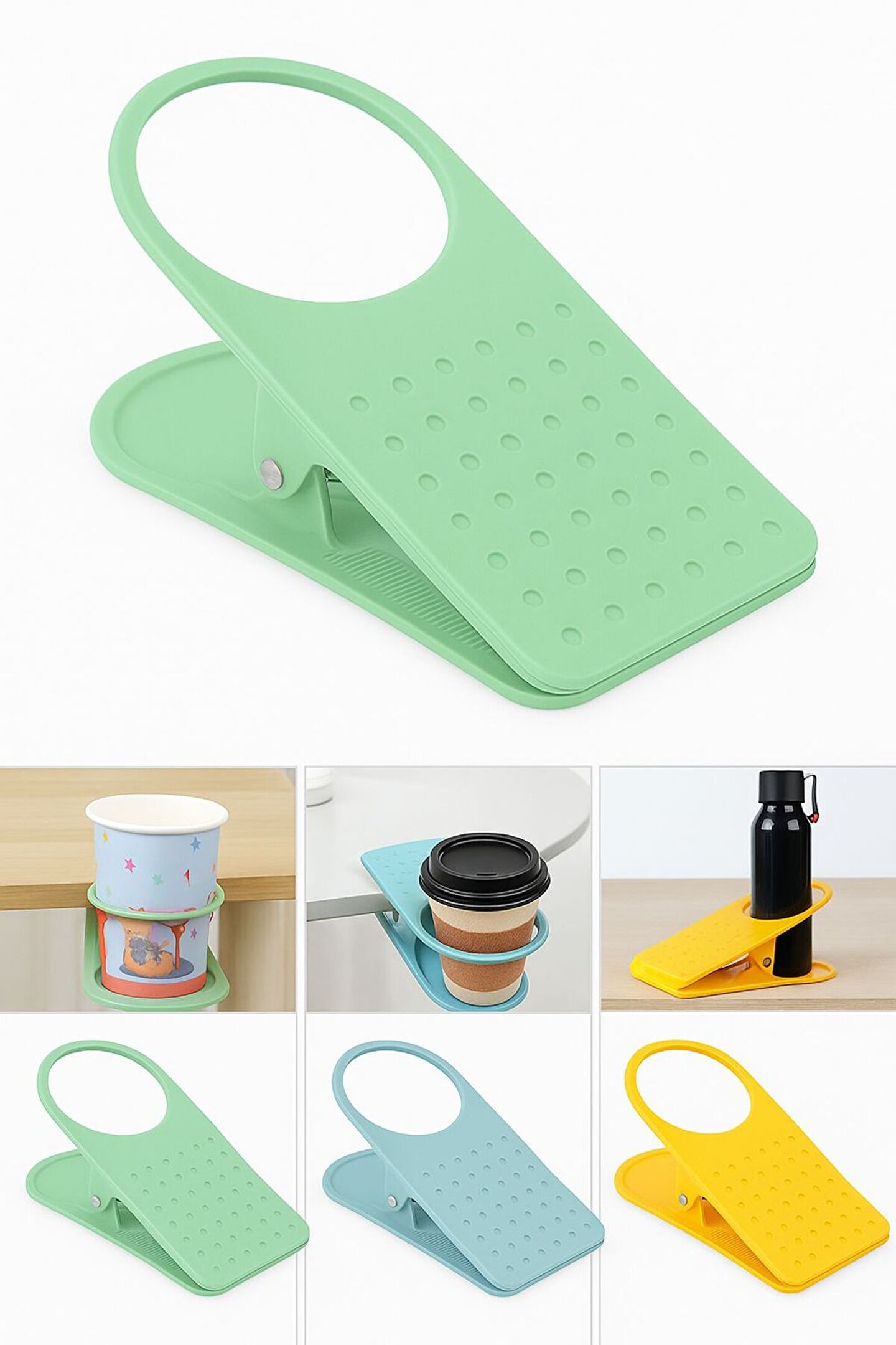 Masa kenarına pratik şekilde sabitlenebilen bu bardak tutucu klips, içeceklerinizi dökülmelere karşı güvenli şekilde tutar.; Geniş halka tasarımı sayesinde bardak, termos, kahve fincanı gibi farklı ebatlardaki kapları kolayca taşır.; Renkli ve şık görünümüyle ofis, çalışma masası, mutfak veya balkon kullanımları için idealdir.; Güçlü yaylı klips yapısı sayesinde masa kenarına sıkıca tutunur ve stabil durur.; ; Plastik malzemeden üretilmiş olan bu bardak sabitleyici, masa üzerindeki alanı daha verimli kullanmanıza yardımcı olur.; Ayrıca çocuklar için güvenli bir kullanım sunar.; Kamp, piknik ve açık hava kullanımlarında da oldukça pratiktir.; ⸻ Ürün Özellikleri: •Ürün Tipi: Masa kenarı bardak tutucu klips •Malzeme: Sağlam plastik •Tasarım: Büyük halka açıklığı ile farklı bardaklara uyumlu •Renkler: Sarı, mint yeşili, açık mavi (STOK DURUMUNA GÖRE RENK GÖNDERİLİR •Ölçüler: Standart masa kalınlıklarına uyumludur •Kullanım Alanları: •Ofis masası •Çalışma masası •Mutfak tezgâhı •Balkon masası •Kamp ve piknik masaları •Özellikler: •Kaymaz yüzey •Sağlam klips mekanizması •Taşınabilir ve hafif •Kolay tak-çıkar sistemi •Bardak, termos, kupa ve şişe ile uyumlu •Avantajlar: •Dökülmeleri önler •Masa üstü alan kazandırır •Renkli ve modern görünüm •Uzun ömürlü kullanım Boyutu : 16*7.5*3.5 Cm Ağırlık : 86.81 Gr.; Ergonomik, şık tasarım Adet : 1