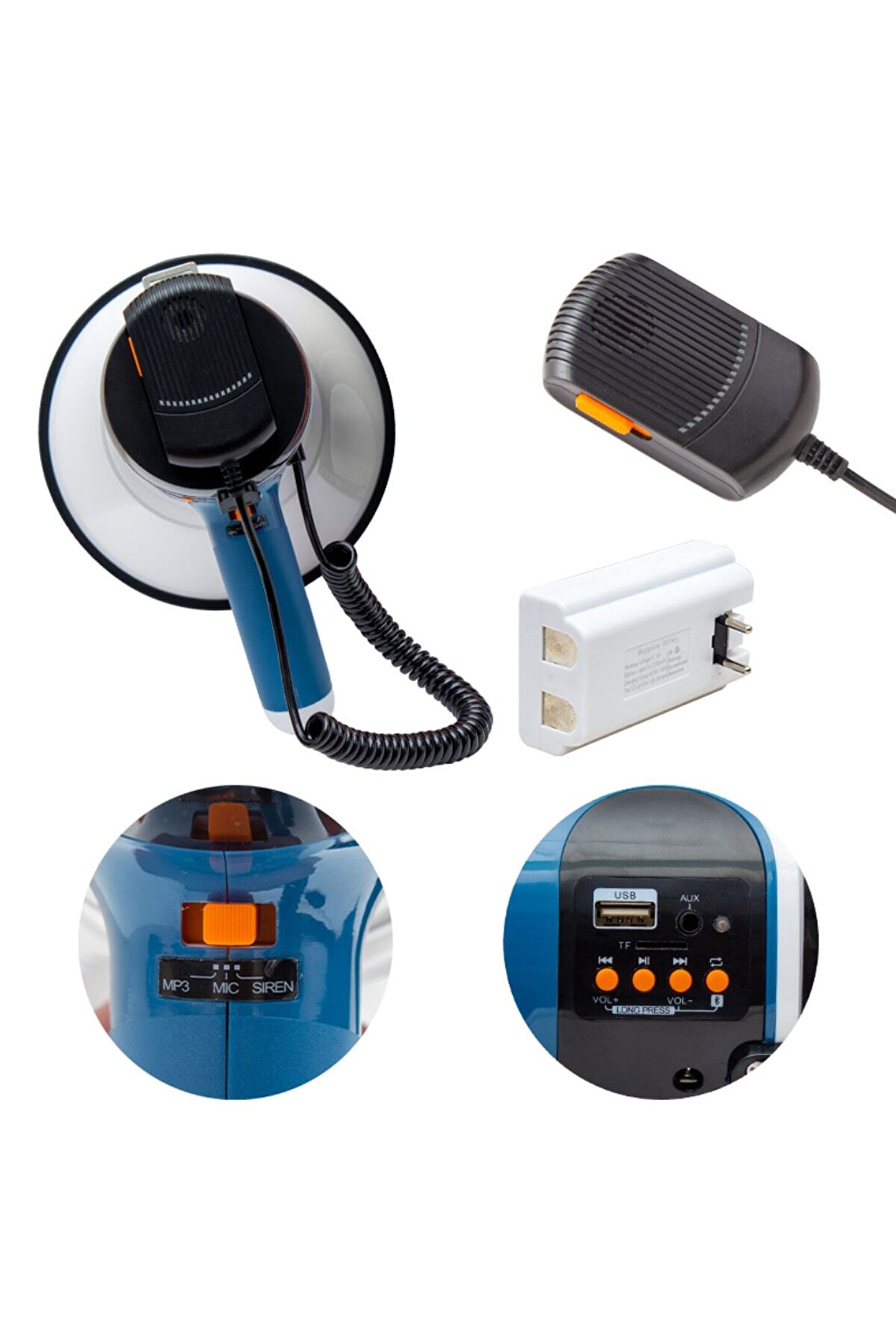 ; 4190 Mayk Mikrofonlu Megafon Özellikleri Tanım: Mayk Mikrofonlu Megafon USB ; AUX ; SD Kart Girişli Şarj üniteli Mayklı Sinyal Sesi: Siren Ses kaydetme özelliği RMS Watt: 100 W Voltaj: 12V Boyut: (L)360mm x (D)210mm Yüksek kalite Verimlilik: 107 dB / 1W / 1m Frekans Tepkisi: 250 Hz / 7 ; 000 Hz Model : MV ; 4190 Önemli Not: Ürün başlığında çoklu adet belirtilmedi ise bir adet ürün gönderimi yapılacaktır ; Ürün renk seçimi yapamıyorsanız stok durumuna göre karışık renklerde ürün gönderimi yapılacaktır ; 8680618331462 Önemli Not: Ürün başlığında çoklu adet belirtilmedi ise bir adet ürün gönderimi yapılacaktır ; Ürün renkBeyaz ; ;