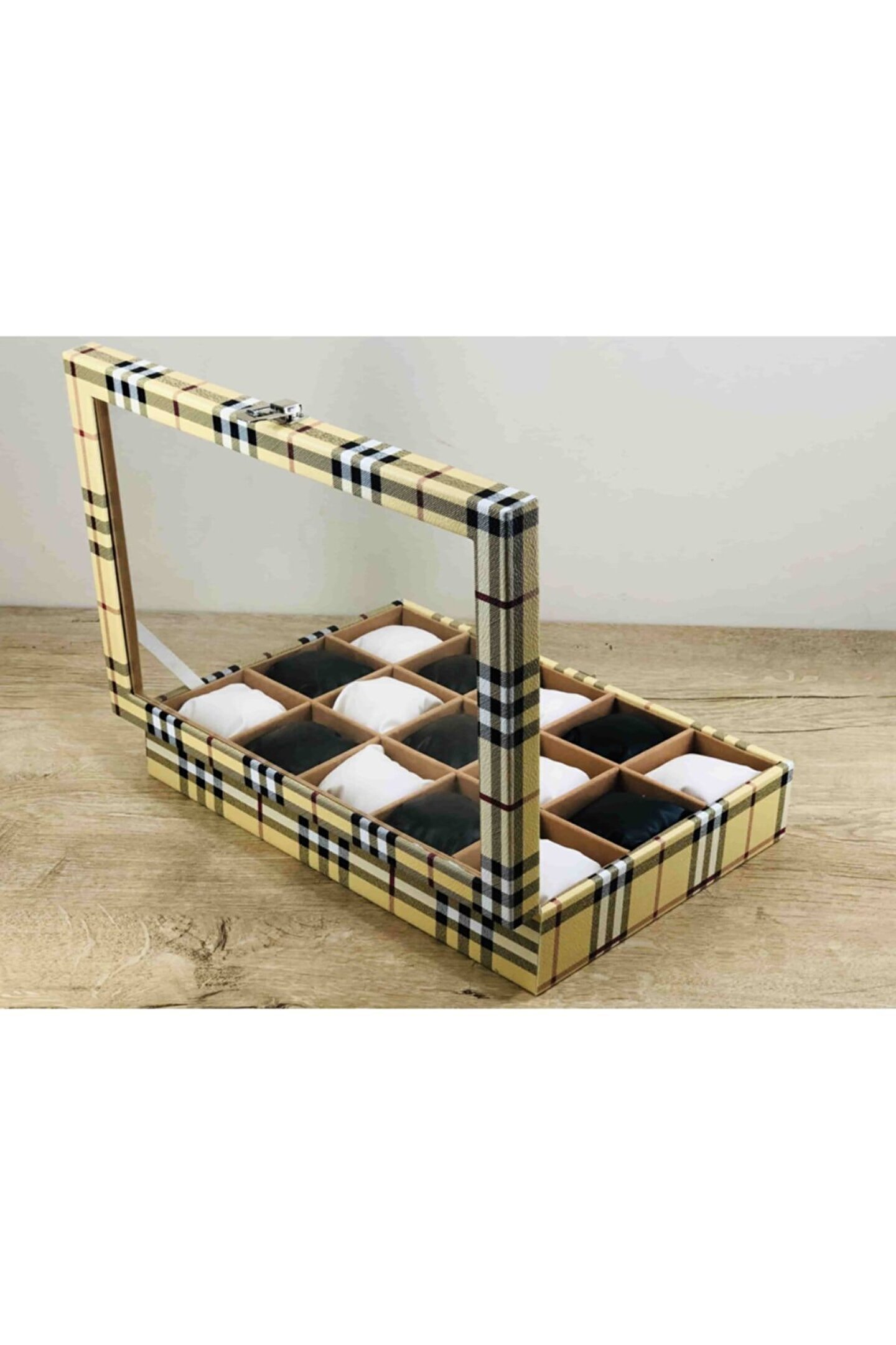 %100 Orijinal Türk Malıdır Türkiye'de Üretilmiştir Çin Malı Değildir İmalattan Halka Satış Fabrikasyon Yapımı Değildir Tamamen El Yapımıdır 15 adet Büyük Boy Gözlüdür 15 Adet Siyah Bayez Vinlex Kaplama Yastıklar Silikon Dolgulu Yumuşak yastıklar Her Boyuttaki Saatlere Kolaylıkla Uyar Spor ve Klasik Saatler için Uygundur Bayan ve Erkek Modellerine Uyumludur Yurt Dışına Gönderim ve İmzalı Teslimat vardır BOYUTLARI : Dış Kutu Boy : 241mm Dış Kutu En : 341mm; Dış Kutu Yükseklik : 81mm; İç Göz Boy : 7; 1mm; İç Göz En : 6; 1mm; İç Göz Yükseklik : 7; 1mm; Kilit En : 25mm; Kilit Boy : 32mm; Mentese Boy : 18mm; Mentese En : 21mm; Resimler Orjinal kendi çekimlerimizdir Resimdeki Saat Kutusu Gönderilicektir Ürünlerin Hepsi Stoklarımızda Mevcuttur Stoktan Aynı gün Anlaşmalı Kargo ile Adresinize Gönderilmektedir Ana Gövde : 5mm; Ahşap Gövde Üstü : 2mm Mukavva İç Kaplama :;