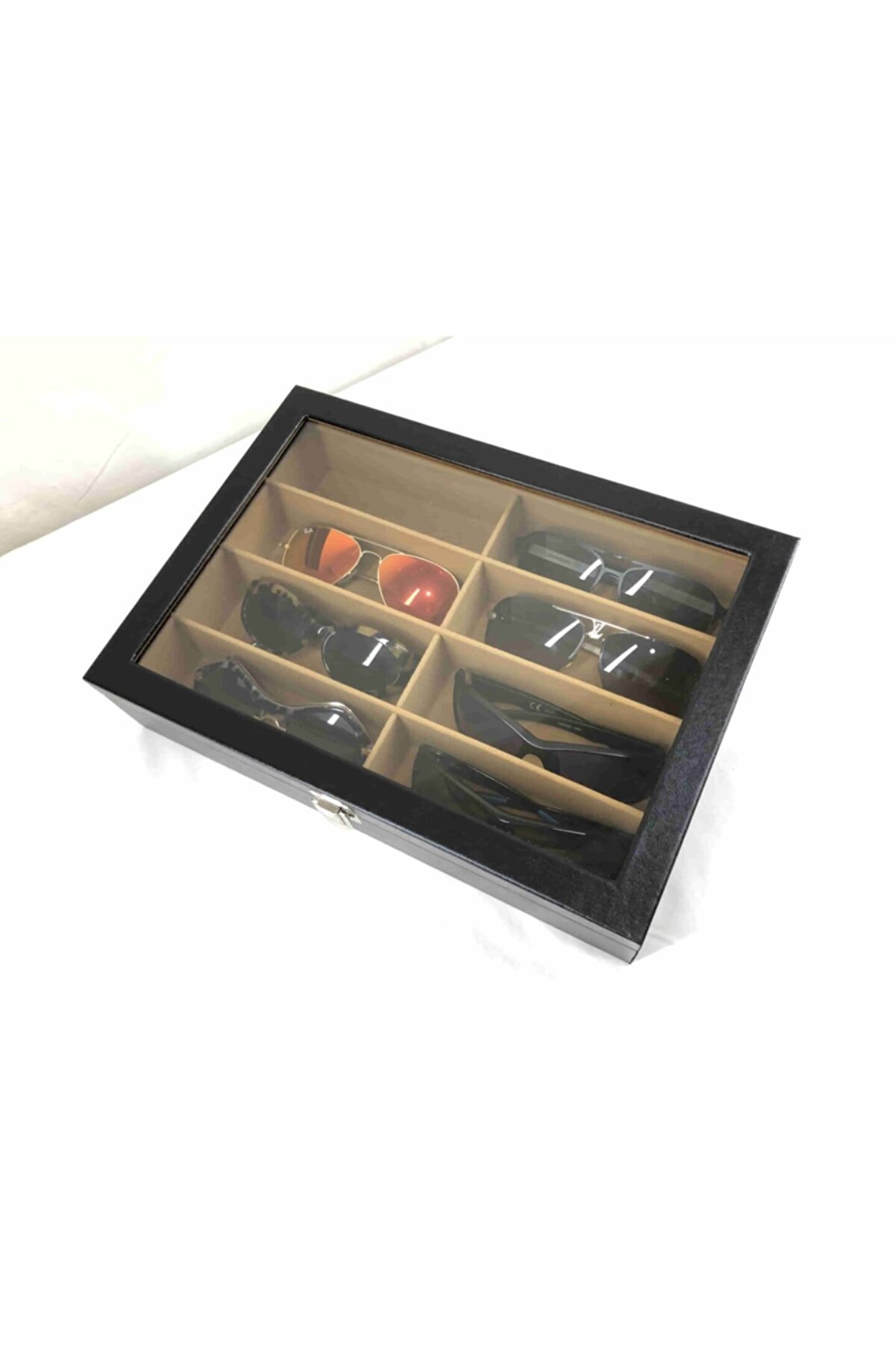 8 adet gözlük saklama bölüm bulunan özel el yapımı saklama kutusu Iç kısmı kahverengi kadife kaplı Dış kısmı siyah deri kaplama %100 orijinal türk malıdır Türkiye de üretilmiştir Çin malı değildir Imalattan halka satış Tamamen el yapımıdır Spor ve klasik gözlüükler için uygundur Boyutları : Dış kutu boy : 241mm Dış kutu en : 341mm. ; Dış kutu yükseklik : 81mm. ; Kilit en : 25mm. ; Kilit boy : 32mm. ; Kilit : Metal Menteşe boy : 18mm. ; Menteşe en : 21mm. ; Menteşe : Metal Ana gövde : 5mm. ; Ahşap Gövde üstü : 2mm mukavva Iç kaplama : Özel tüy dökmez kahverengi kadife Dış kaplama : Pu leather vinlex Cam : 1.8mm kalınlık Resimler orijinal kendi çekimlerimizdir Resimdeki gözlük kutusu gönderilecektir;