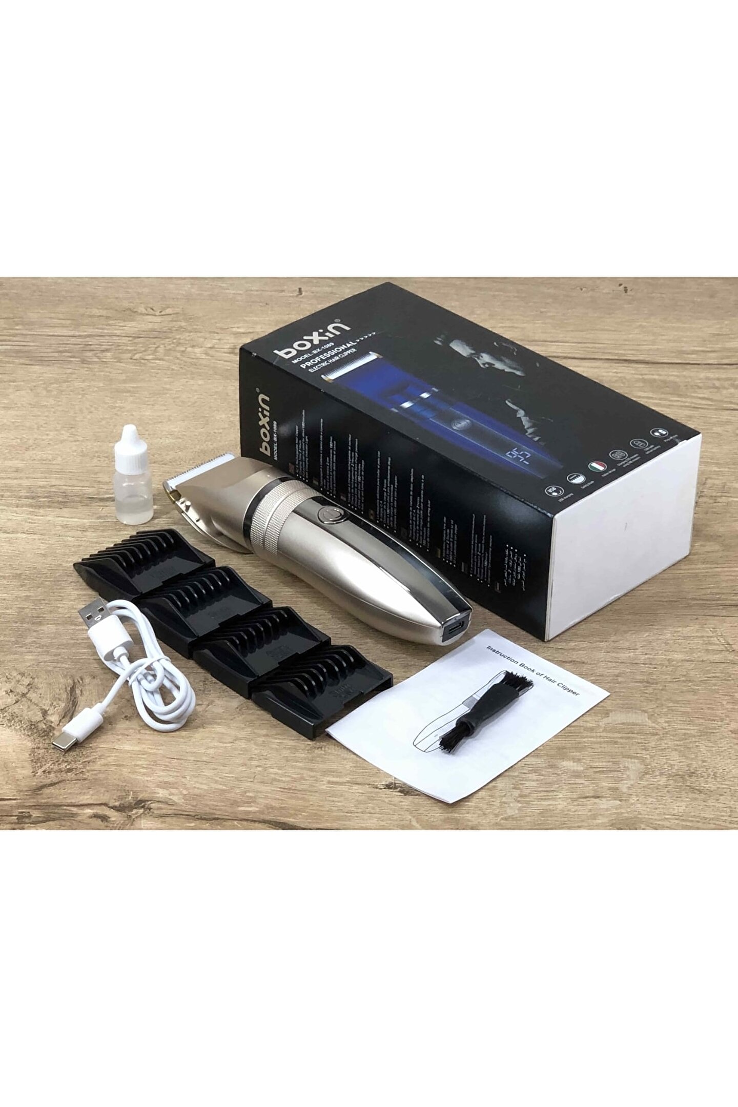 Saç Sakal Bıyık Ense Kılı Alıcı USB den Şarj Edilebilen Dijital Göstergeli Tıraş Makinesi Ürünün Teknik Özellikleri : Ortalama 5 Saat Şarj Süresi Kabloya Bağlı Olmadan Şarjlı Yapısı Sayesinde Pratik Ve Basit Kullanım Sağlar Özel Ayarlanabilir Keskin Bıçakları Sayesinde Rahat Ve Etkili Sonuç Verir Yüksek Kaliteli Paslanmaz Çelik Bıçaklar; Ayarlanabilir Başlıklı Ergonomik El Tipi Tasarımı İle Kullanımı Rahattır Kutu İçeriği : 1 Adet Tıraş Makinesi + 4 Adet Ayarlı Plastik Kesim Tarağı + 1 Adet USB Şarj İçin Kablo + 1 Adet Minik Kıl Temizleme Fırçası + 1 Adet Mini Yağlayıcı + Kullanım Kılavuzu;