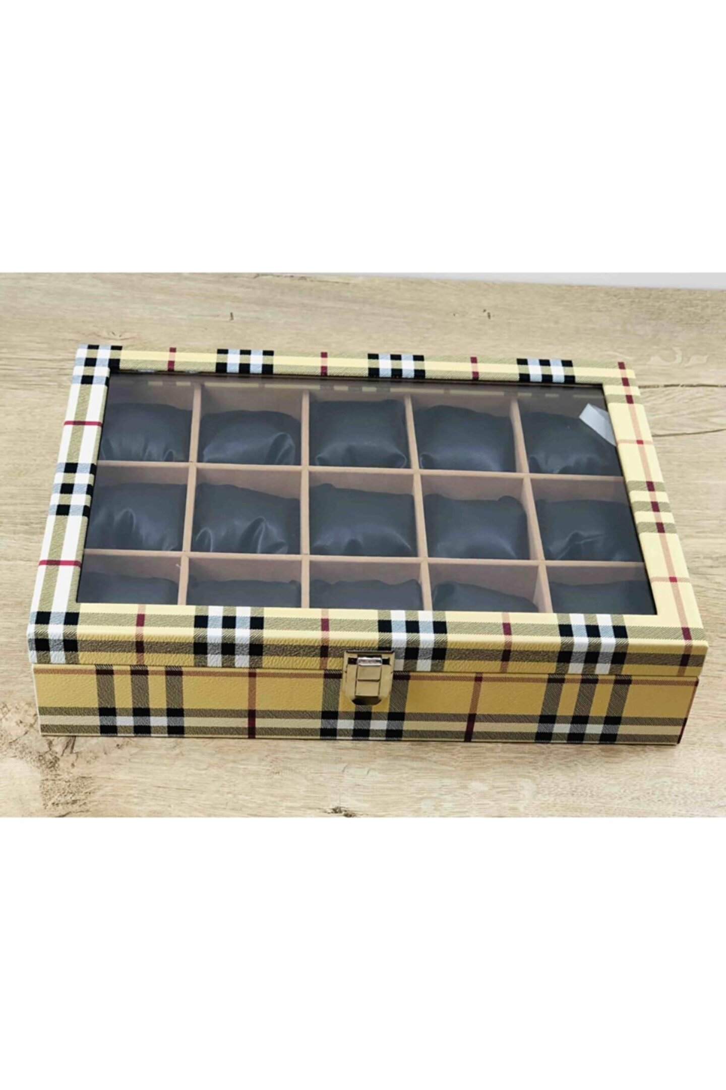 El yapımı cam kapaklı saat kutusu, şıklığı ve dayanıklılığı bir arada sunar; Sarı ekoseli deseniyle modern ve estetik bir görünüm kazandırır; Siyah yastıklı iç yapısı, saatlerinizi tozdan ve darbelere karşı korur; Yıkama talimatı "type 0" olarak belirtilmiştir, bu da ürünün kolay temizlenebilir olduğunu gösterir;
