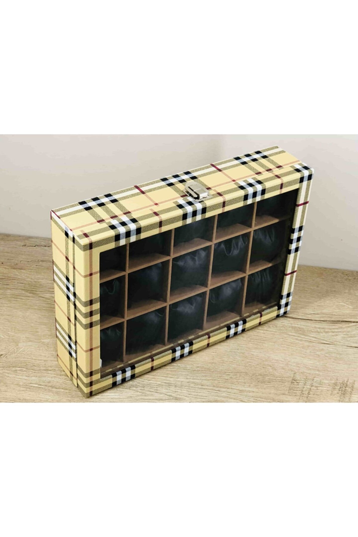 %100 Orijinal Türk Malıdır Türkiye'de Üretilmiştir Çin Malı Değildir İmalattan Halka Satış Fabrikasyon Yapımı Değildir Tamamen El Yapımıdır 15 adet Büyük Boy Gözlüdür 15 Adet Siyah Vinlex Kaplama Yastık Silikon Dolgulu Yumuşak yastıklar Her Boyuttaki Saatlere Kolaylıkla Uyar Spor ve Klasik Saatler için Uygundur Bayan ve Erkek Modellerine Uyumludur Yurt Dışına Gönderim ve İmzalı Teslimat vardır BOYUTLARI : Dış Kutu Boy : 241mm Dış Kutu En : 341mm. ; Dış Kutu Yükseklik : 81mm. ; İç Göz Boy : 7.1mm. ; İç Göz En : 6.1mm. ; İç Göz Yükseklik : 7.1mm. ; Kilit En : 25mm. ; Kilit Boy : 32mm. ; Mentese Boy : 18mm. ; Mentese En : 21mm. ; Resimler Orjinal kendi çekimlerimizdir Resimdeki Saat Kutusu Gönderilicektir Ürünlerin Hepsi Stoklarımızda Mevcuttur Stoktan Aynı gün Anlaşmalı Kargo ile Adresinize Gönderilmektedir Ana Gövde : 5mm. ; Ahşap Gövde Üstü : 2mm Mukavva İç Kaplama :;
