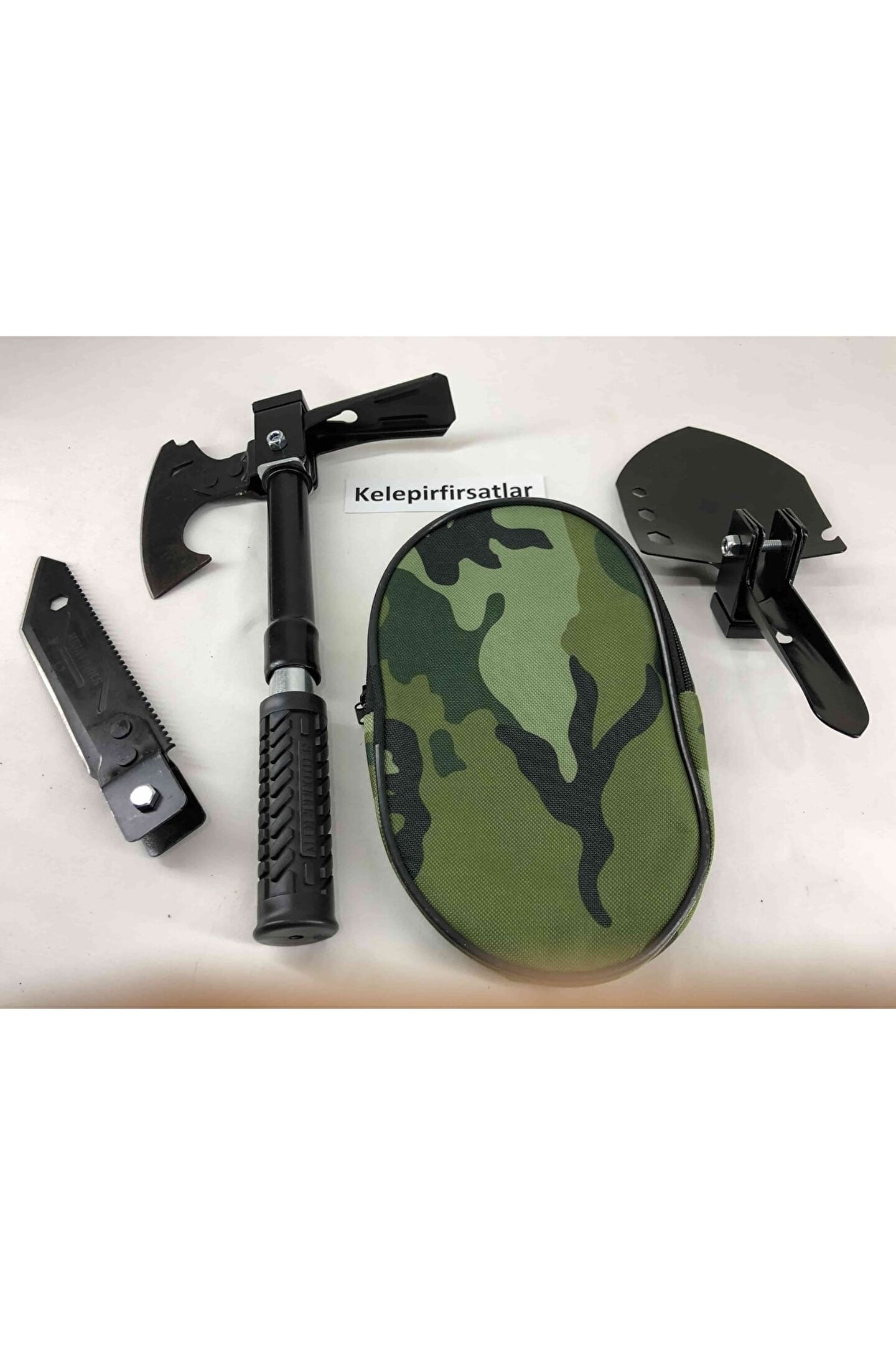 Kelepir Fırsatlar Süper Pratik Sökülüp Katlanan Minik Askeri Çelik Balta Çekiç Çapa Bıçak Testere Seti Haki Çantalı