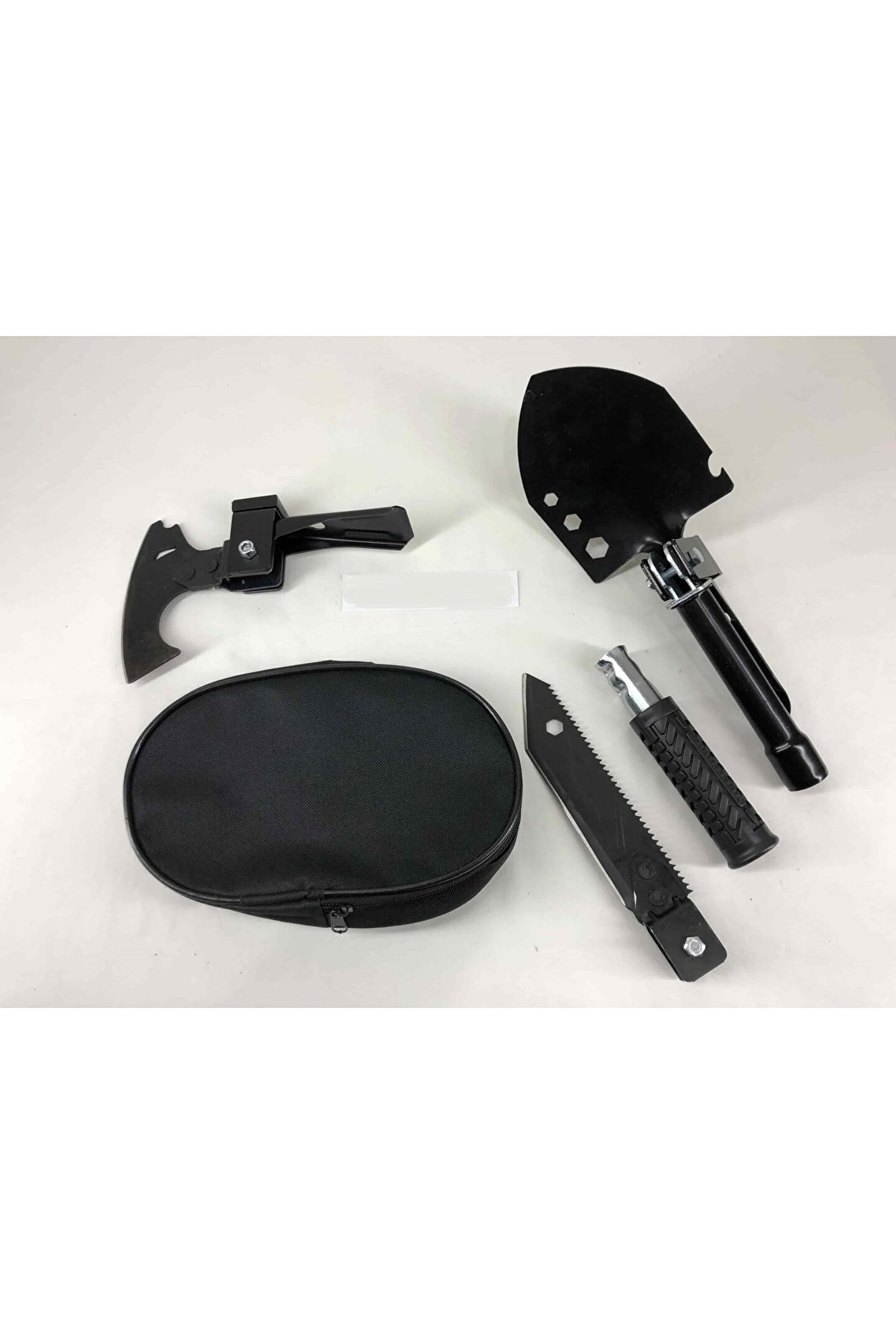 Balta, çekiç, kazma, çapa, testere, 8,10,13 yıldız anahtar, şişe açacağı, çivi sökücü,keser, bıçak mevcuttur. ; bir kaç hamlede pratik ve kolayca açılıp kapanabilen katlanabilir portatif kürek seti. ; Sizi dış mekan aktivitelerinizde büyük ve ağır kürekleri taşıma zahmetinden kurtarır. ; bıçak çok keskin ve sivri uçludur ısıl işlem görmüştür, kararma, oksitlenme ve paslanma yapmaz. ; kolayca açılır ve kapanır, kilit sabitleme mekanizması bulunmaktadır kauçuk yuvarlak sap güçlü kullanım sunar her türlü dış etkenlere karşı (güneş ışığı, tuzlu su, kar, buz, sıcak soğuk) dayanıklıdır. ; çok fonksiyonel mini kürek fidan dikmek, çapa yapmak, kar küremek, 8,10,13 yıldız anahtar ve aynı zamanda şişe açacağı olarak kullanılabilir. ; portatif kürek setini yolculuklarda mutlaka arabanızın bagajında, avadanlığınızda veya alet çantanızda muhakkak bulundurun. ; evinizdeki pratik yardımcınızdan kürek çok yer kaplıyorsa, katlanabilir kürek tam aradığınız üründür. ; pratik, şık ve kaliteli tasarlanmış özel taşıma çantasının içerisinde kolayla dilediğiniz her yere götürebilir taşıyabilirsiniz. ; acil durumlarda ve ihtiyaç duyduğunuz her yerde en büyük yardımcınız olucak. ; katlanabilen minik yapısı sayesinde işiniz bittiğinde kolaylıkla katlayıp taşıyabilirsiniz. ; mini metal küreği ile bahçe bağ tarla bakımını daha hızlı ve pratik bir şekilde gerçekleştirebilirsiniz. ; Hafif ve küçük yapıya sahiptir, yer kaplamaz, pratik ve kolay taşınır. ; ürün ölçüleri : kurulu kürek uzunluğu : 41 cm kurulu çekiç uzunluğu : 27 cm kurulu kazma uzunluğu : 30 cm kurulu bıçak uzunluğu : 44 cm kapalı toplam uzunluk : 20 cm Kurulu balta uzunluğu : 41 cm Bıçak uzunluğu : 16 cm Testere uzunluğu : 15 cm kürek uzunluğu : 13 cm Çekiç uzunluğu : 3 cm Kazma uzunluğu : 10 cm Balta uzunluğu : 10 cm Tutma sapı çapı : 3 cm Tutma sapı uzunluğu : 44 cm Tutma sapı kundağı : 10 cm Toplam ağırlık : 770 gram Kullanılan materyaller : metal : Paslanmaz çelik kaplama : Elektrostatik toz kaplama renk : Siyah el kundağı : Kauçuk Civatalar : Paslanmaz krom Çanta : Hafif branda Paket içeriği: Bir adet katlanır kazma kürek balta seti + bir adet özel yeşil kamuflaj taşıma çantası Çanta : Hafif branda Paket içeriği: Bir adet katlanır kazma kürek balta seti + bir adet özel siyah taşıma çantası;