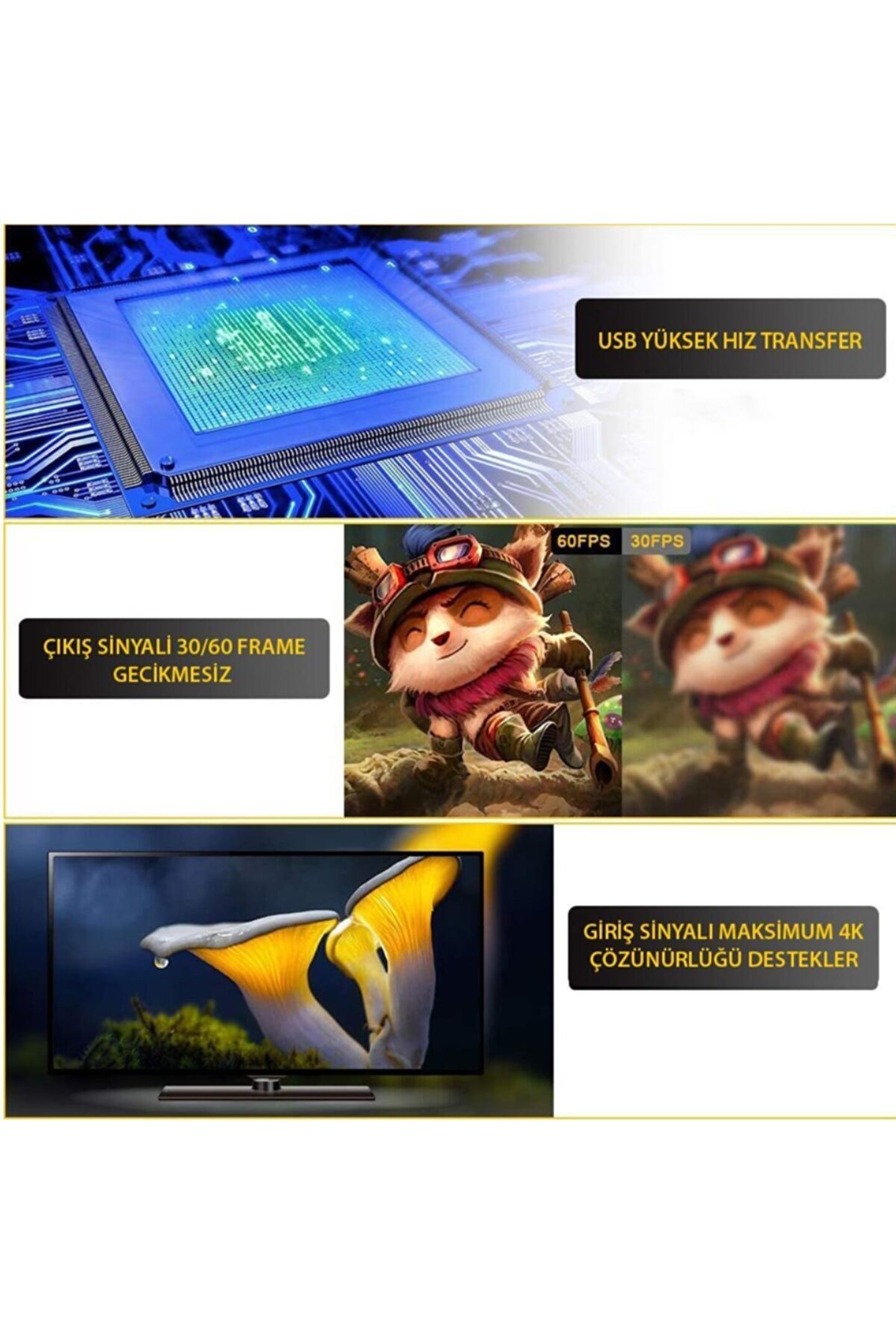 4K HDMI Video Capture Video Yakalama Cihazı Gamer Capture Device Genel Özellikler: Çalışma Fonksiyonu: HDMI Video Yakalama Cihazı (1 Giriş, 1 Çıkış) 1*HDMI Dişi Giriş (Kaynak Cihaz), 1*USB Erkek Çıkışı (Bilgisayar) Yeni Maksimum Giriş Çözünürlüğü: 4K Ultra HD 2160P 30 fps Maksimum Çıkış Çözünürlüğü: Full HD 1080P 30 fps Desteklenen Renk Derinlikleri: 8 Bit / 10 Bit / 12 Bit Giriş Arayüzü: 1* Tip A 19 Pin Dişi HDMI Soket Çıkış Arayüzü: 1* USB 2.0 Erkek Soket Windows, Android ve MacOS işletim sistemlerinde direk çalışır. ; Sürücü Gerektirmez OBS Stüdyo ( Türkçe ), VLC Media Player ( Türkçe ), Amcap, Xsplit vb. ; yüzlerce ücretsiz kayıt yazılımını destekler Canlı Video Paylaşım Desteği: Youtube, Twitch, Periscope, Facebook, Live Stream, Tik Tok, Steam, Dailymotion, Smashcast, Nico Live, Yeye Live ve Afreca TV gibi yüzlerce uygulama üzerinden canlı yayın özelliğini destekler Playstation, Xbox ve Nintendo Switch gibi oyun konsollarından kayıpsız görüntü kaydı sağlar OBS Stüdyo vb. ; programlarla içiçe birden fazla kaynak cihaz görüntüsü aktarılabilir. ; Arka planda PS4 görüntüsü, sağ alt köşede web kamera görüntüsü gibi... ; USB Video ve UVC standardına uygundur USB ses UAC standardına uygundur HDMI v1.4b Desteği HDCP v1.4b Desteği Sürücü Gerektirmeyen Tak & Çalıştır Kullanım Desteği TV, DSLR Kamera, DVD/VHS vb. ; HDMI kaynaklardan Video Kaydı İnternet konferansları ve Netmeeting toplantıları için uygundur. ; Yeni EBA, Zoom vb. ; Uzaktan Eğitim ve Canlı Ders Uygulamaları İçin Uygundur. ; Cihazın Çalışması için USB 2.0 Arayüzünün Gücü yeterlidir. ; USB 2.0 arabirimi üzerinden hem Video hem de Ses yakalar Kompakt ve taşınabilir yapıdadır. ; Hem Ses Hem de Görüntü Sinyallerini Eş Zamanlı ve Kayıpsız İletir. ; Desteklenen Ses Formatları: DTD-HD/Dolby-TrueHD/LPCM/DTS/Dolby-AC3/DSD vb. ; Maksimum Kablo Giriş Uzunluğu: F.HD 1080P ?15 Metre 26AWG Kablo Maksimum Kablo Giriş Uzunluğu: 4K 2160P ?10m 26AWG Kablo Malzeme: Endüstriyel Tip Alüminyum Metal Kasa Renk: Metalik Siyah Kalite ve Güvenlik Sertifikaları: FCC, CE, RohS Maksimum çalışma akımı:0.4A/5VDC Çalışma Aralığı: -10 °C ile + 55 °C Ürün Ölçüleri: 64 mm x 28 mm x 13 mm Ürün Ağırlığı: 21,4 Gram Paket İçeriği: : 1 Adet HDMI Video Capture Cihazı 1 Adet Kullanım Klavuzu;
