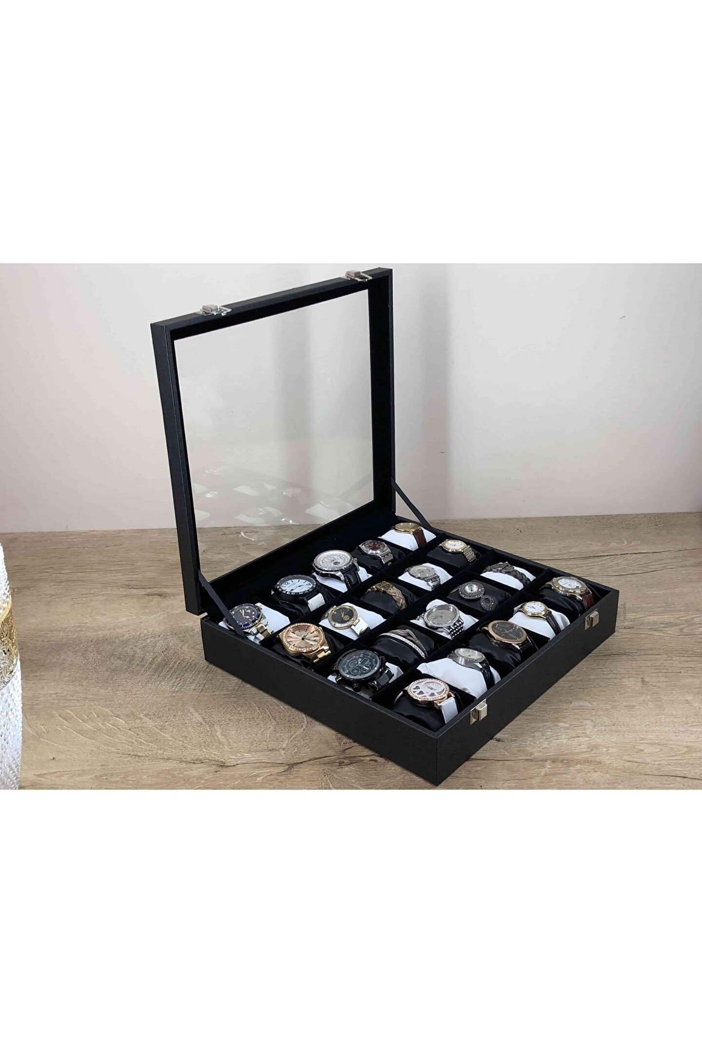 - Yerli üretim deri kaplama, dayanıklılığı ve şık görünümü ile dikkat çeker; - 20 farklı saat alabilme kapasitesiyle, koleksiyonunuzu düzenli ve korunaklı bir şekilde saklamanızı sağlar; - Kolay erişim için tasarlanmış kilitli kapak, değerli eşyalarınızın güvenliğini artırır; - Dekoratif tasarımı ile ev veya ofis dekorasyonunuza estetik bir dokunuş ekler;