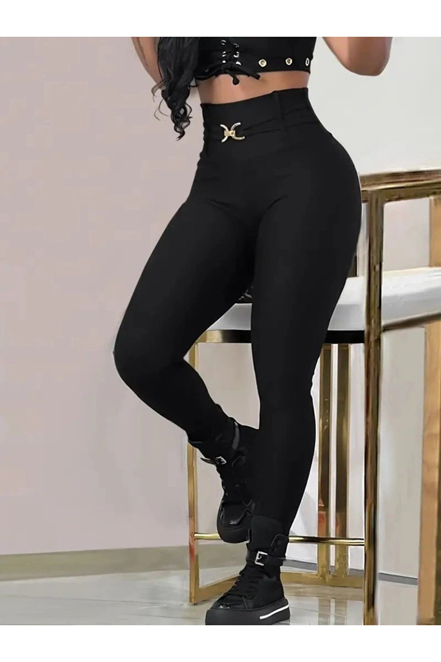 Kadın Yüksek Bel Belden Toka Detaylı Dalgıç Tayt