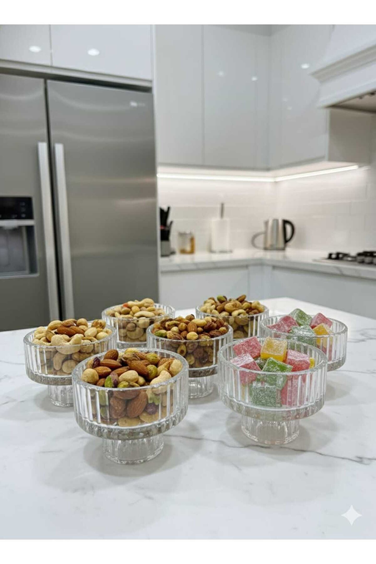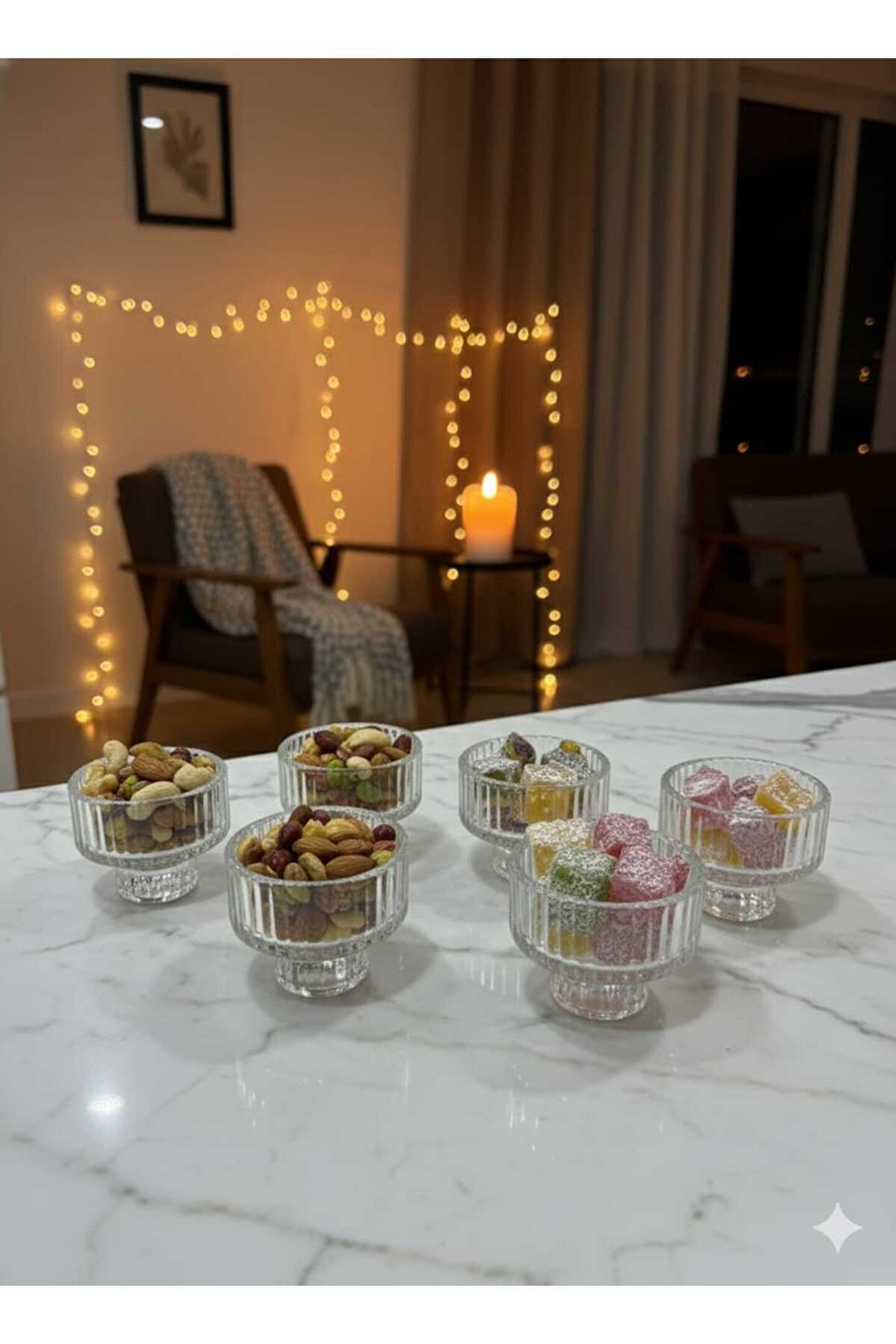- Gıda ile temas güvenliği sağlayan malzemeden üretilmiştir, böylece mutfak ve sofralarınızda gönül rahatlığıyla kullanabilirsiniz.; - 6 adet olarak sunulan bu çok amaçlı mumluk, dekoratif ve fonksiyonel bir seçenek sunar.; - Şık origami desenleriyle süslenmiş çizgili cam tasarımı, her türlü ortama estetik bir dokunuş katar.; - 5x6.5 cm boyutlarındaki kompakt yapısı ile hem mumluk hem de çerezlik veya lokumluk olarak idealdir.; - Türkiye'de üretilmiş olup, yerel üretimden elde edilen kaliteli malzemelerle üretilmiştir.;