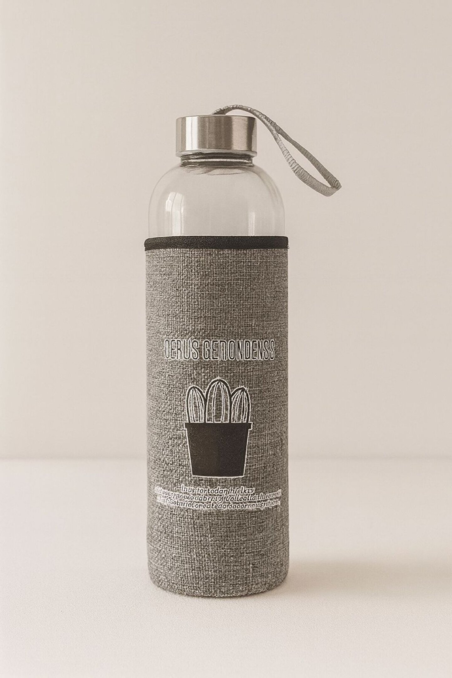 Modern tasarımıyla öne çıkan gri kılıflı 750 ml cam matara, hem şık hem de sağlıklı bir kullanım sunar.; Kaktüs deseni ile dekoratif bir görünüm sağlar.; Paslanmaz çelik kapağı sızdırmazlık özelliği sunarken kumaş kılıfı darbelere karşı ekstra koruma sağlar.;