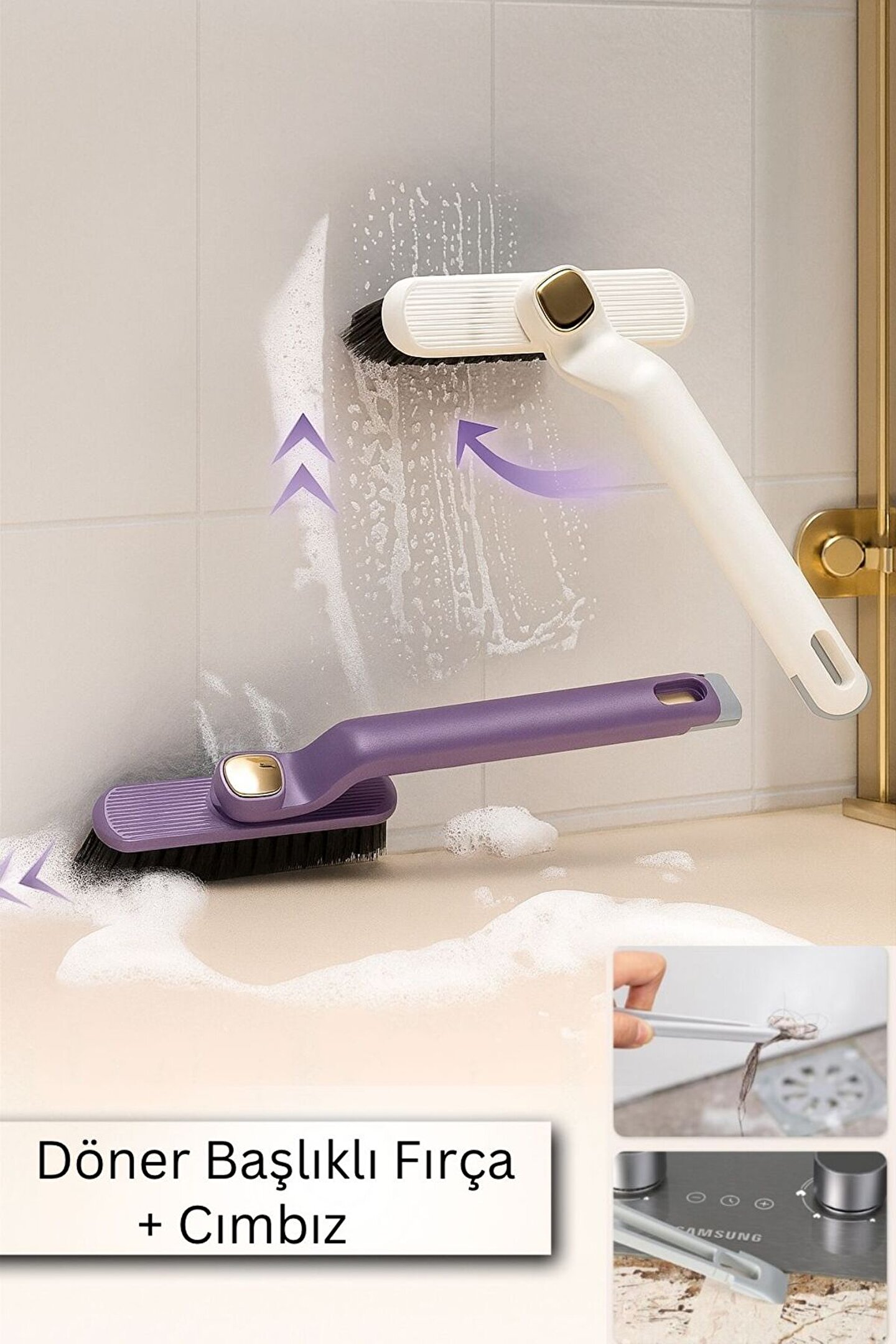 Kırmızı Beyaz Home Döner Başlıklı Temizlik Fırçası Cımbızlı Çok Amaçlı Temizlik Fırçası