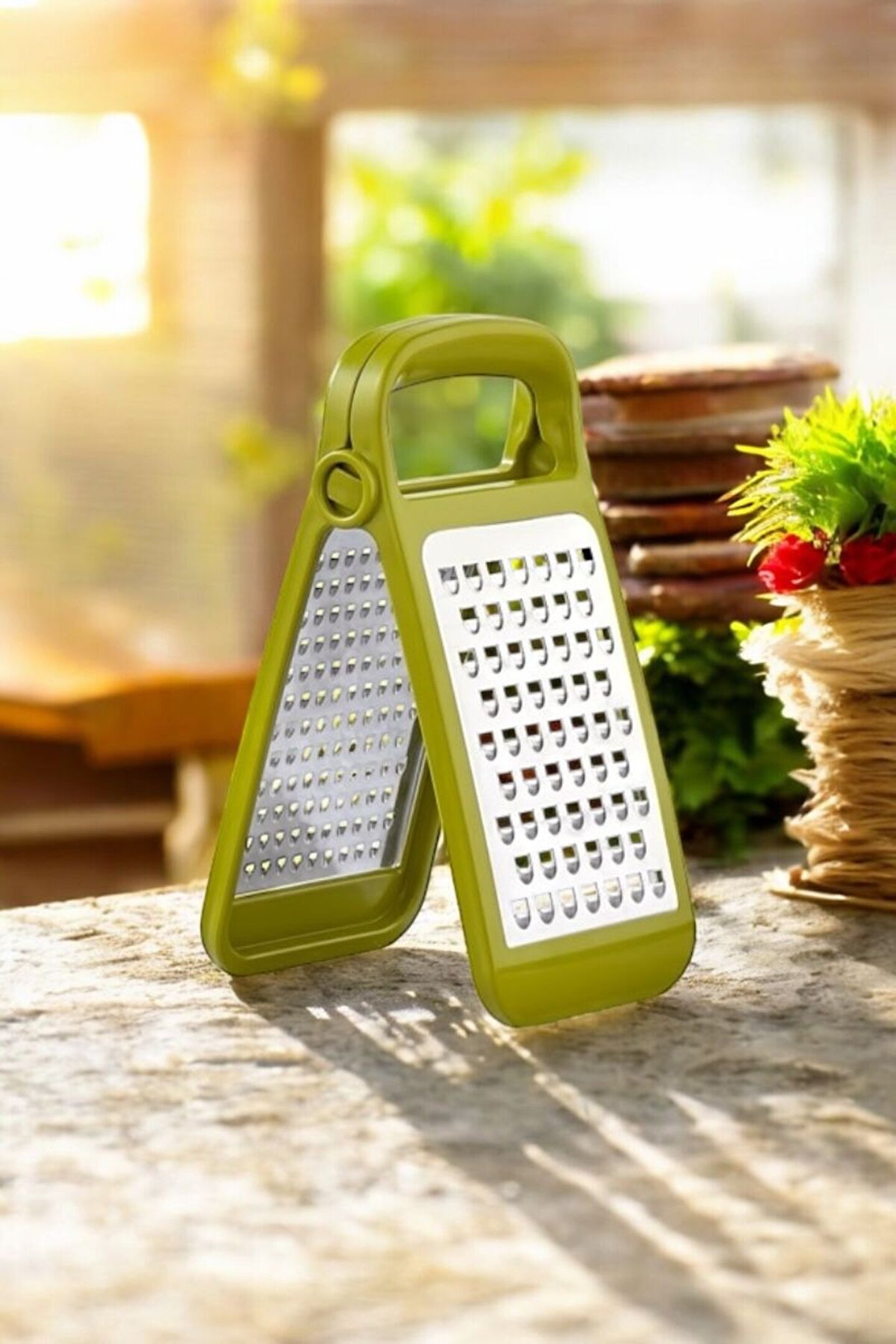 - Katlanabilir ve ayrılabilir yapısıyla öne çıkan bu ergonomik rende, mutfakta yer tasarrufu ve çok yönlü kullanım imkanı sunar. Çift taraflı kesim için tasarlanmış farklı ölçülerdeki paslanmaz çelik (430) bıçaklar, kase veya tencere üzerinde kolaylıkla kullanılabilir. Katlanabilir özelliği sayesinde kullanım sonrası yer kaplamaz, ayrılabilir tasarımı ise her bir parçanın ayrı ayrı kullanılmasına olanak sağlar. Bulaşık makinesine uygundur ve elde yıkama için de pratiktir. Modern tasarımı ve farklı renk seçenekleriyle mutfağınıza estetik bir dokunuş katar.