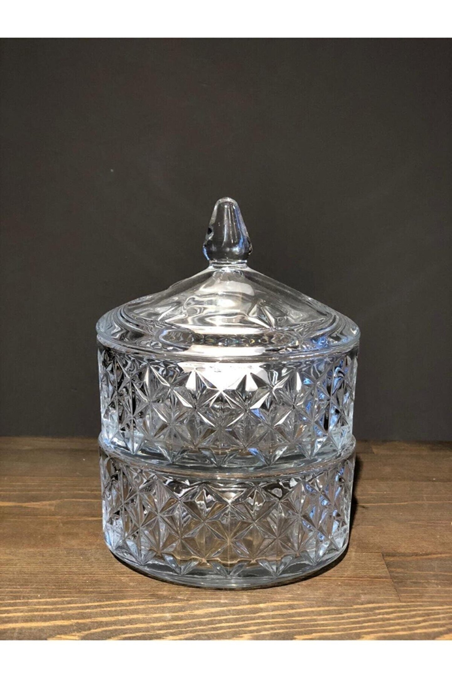 Malzeme : Kesme Cam Ölçü : 20x13 cm 1. ; sınıf kesme cam malzemeden üretilmiştir. ; Kapaklı 2 kat lokumluk modelidir Renk solması kararma gibi olumsuzluklar meydana gelmez Dekor olarakta kullanabilir modeldir Sevdiklerinize kullanışlı hediye alternatifidir Korunaklı kutusunda kargolanacaktır;