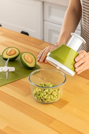 Ergonomik tasarımı, dayanıklı gövdesi ve fonksiyonel yapısıyla mutfağınızda yer kaplamadan maksimum verim sağlayan manuel el rondosu ile tanışın! Katlanabilir ve ayrılabilir paslanmaz çelik bıçakları sayesinde hem kolay kullanım hem de hijyenik temizlik sunar.; Her bir bıçak ayrı ayrı kullanılabilir ve tencere veya kase üzerinde doğrudan işlem yapılabilir.; BPA içermeyen yapısıyla sağlıklı kullanım sunarken, farklı renk seçenekleriyle mutfağınıza şıklık katar.; Bulaşık makinesinde yıkanabilir yapısıyla temizlik artık çok daha kolay! ; ⸻