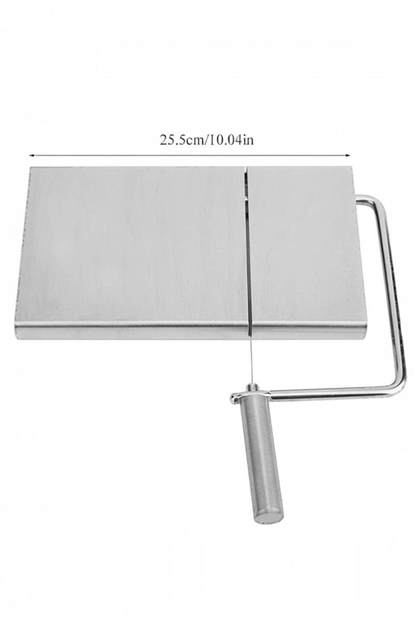 Profesyonel mutfak çözümleri için tasarlanmış Dilimleyici Rendesi, paslanmaz çelik malzemesi ile uzun ömürlü kullanım sunar.; Tereyağ, kaşar peyniri, salam ve çikolata gibi çeşitli gıdaları kolayca dilimlemenizi sağlar.; Tabla üzerinde yer alan 13cm'lik cetveli sayesinde istenilen kalınlıkta dilimleme yapabilirsiniz.; 255x130x22mm boyutları ile kompakt ve kullanışlı bir tasarıma sahiptir.