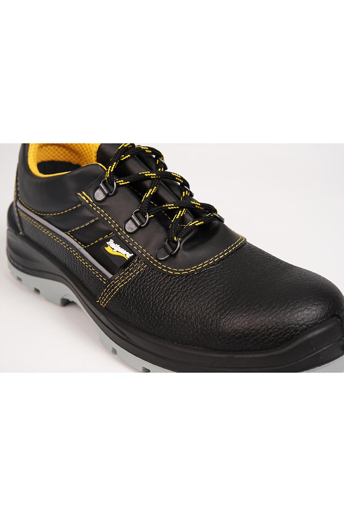 Bestguard Deri Sport S3 Çelik Burunlu İş Ayakkabısı; Tuna Deri: 1; 8; 2; 0 mm suya dayanıklı nefes alabilen deri Astar: Ter emici rahat nefes alabilen koku önleyici astar Mostra: Çıkartılabilir, yıkanabilir şok emici mostra Taban: PU; PU çift densite enjeksiyon teknolojisi, Şok emici topuk, aşınmaya dayanıklı kaymaya dirençli, antistatik taban Burun koruma: 200 J darbe dayanımlı çelik bombe Ara taban: Çelik ara taban (S1P; S3)) Kategori: S1, S1 P, S2, S3 Ek Özellik: Reflektör özelliği Darbe Dayanıklılığı: 200 J;;